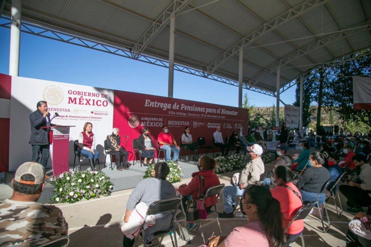 Entregan Gobiernos de Zacatecas y de México apoyos de la Pensión para el Bienestar; el mandatario David Monreal reitera su determinación de acompañar y robustecer la política social del Presidente
