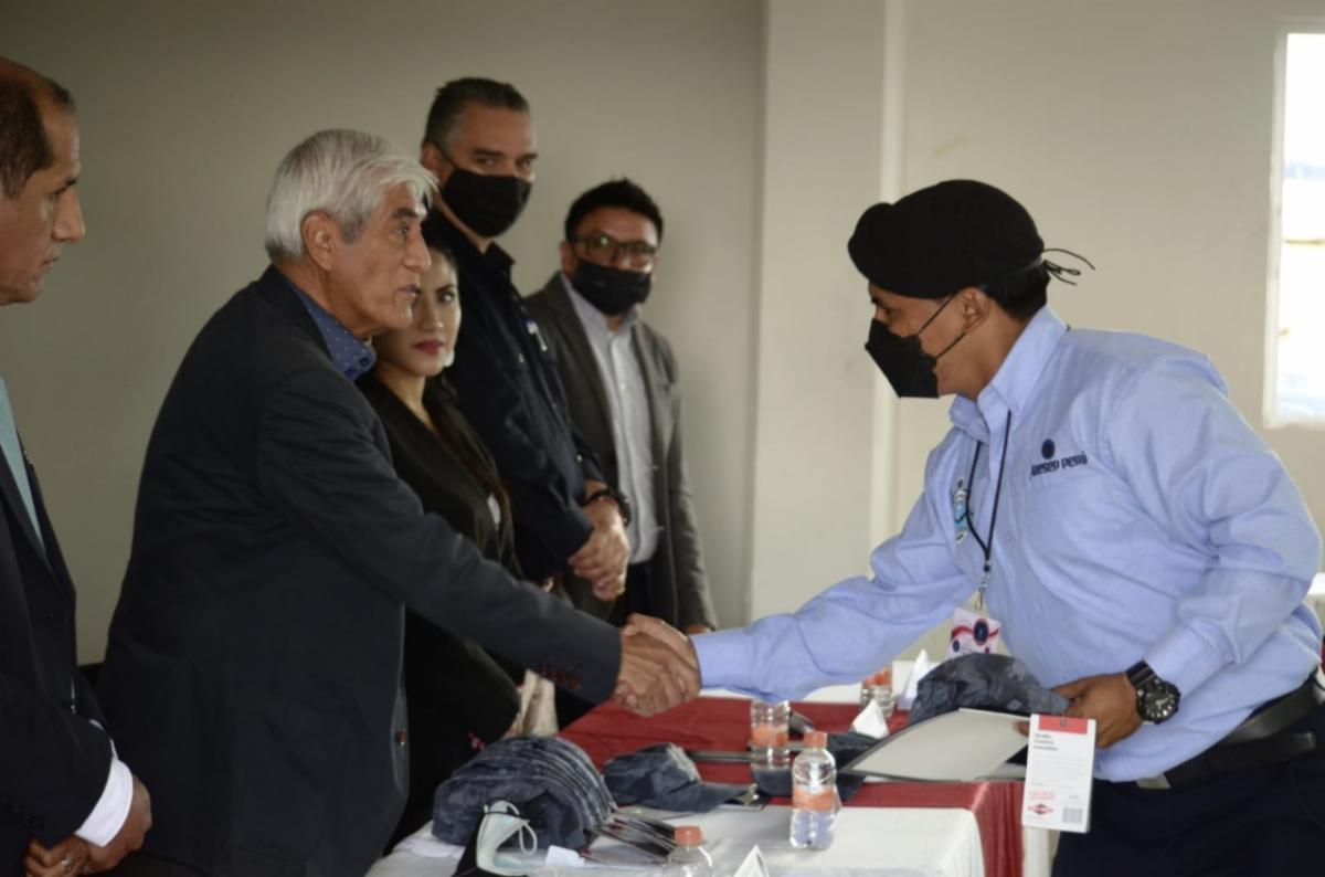 Al encabezar la ceremonia de clausura, el Secretario de Seguridad Pública, General Adolfo Marín Marín, hizo entrega de las constancias de participación y reconocimientos a los 15 Serenos del Perú que participaron en esta primera pasantía internacional.