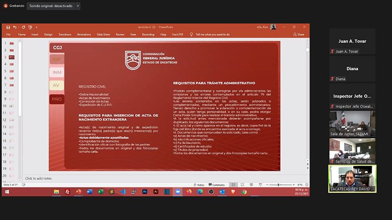 Por medio de las instancias estatales correspondientes, el Gobierno de David Monreal informó, de manera virtual, a los líderes de la comunidad migrante radicada en Estados Unidos, sobre los diversos servicios y requisitos de las dependencias involucradas en dicha atención.