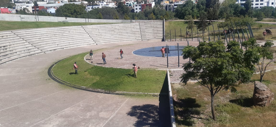 En las secciones 2 y 3 se trabaja en el deshierbe y riego de las áreas verdes, poda de descarga en arbolado, estabilización de andadores de terracería, retiro de maleza, mantenimiento a área de gimnasio y a módulos sanitarios.