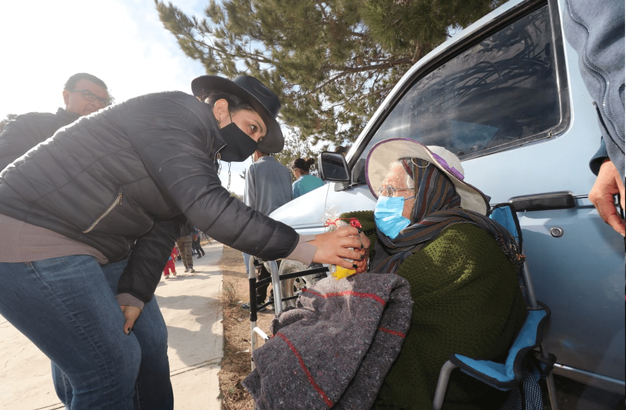 Jerez, Zac., a 30 de diciembre de 2021.- Durante una gira por las comunidades de los municipios de Jerez y Susticacán, la Presidenta Honorífica del Sistema Estatal para el Desarrollo Integral de la Familia (SEDIF), Sara Hernández de Monreal, distribuyó apoyos invernales a las familias zacatecanas, así como bolos y juguetes para niñas y niños.