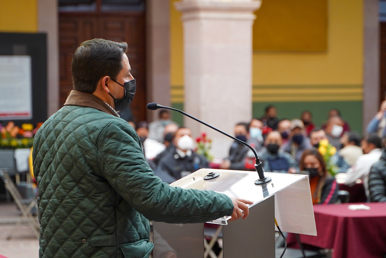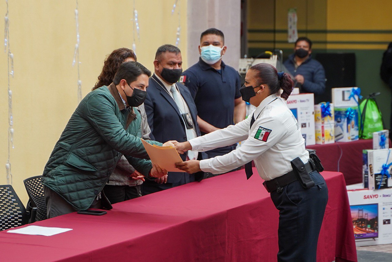 Asimismo, se entregaron reconocimientos por puestas disposición a:• Irene Velázquez Loera• Pedro Luis Gutiérrez• Alvarado Villagrana• Martín Eduardo Chairez• Cinthya Magali Alvarado• José Pérez GonzálezFinalmente, por puestas a disposición comisionados en la Policía Metropolitana:• Fátima Ivette Caldera.• Israel Flores Hernández.De esta manera, el presidente Miranda Castro reiteró su respaldo, compromiso y reconocimiento hacia cada integrante de la Policía Municipal, pero también aseveró que la capital, al igual que el resto del estado, se encuentran lacerados por la inseguridad.“Lo que más le duele a la capital es la seguridad, es por eso que yo festejo y agradezco la gran voluntad política de las y los regidores que tuvieron a bien aprobar por unanimidad el Paquete Económico que beneficia a la corporación”, dijo.Dicho paquete destaca el apoyo a la Secretaría de Seguridad Pública, pues la administración actual está convencida del gran trabajo que realiza el licenciado Gustavo Serrano al frente de la corporación.Por su parte, Serrano Osornio aplaudió el trabajo que día a día hacen mujeres y hombres con la mayor disposición de generar mejores condiciones de seguridad para todas las familias capitalinas.“La labor policial exige que nuestro proceso de profesionalización sea constante porque siempre se nos exigirá la mayor perfección posible, porque la materia vida de nuestra profesión es la vida de los seres humanos”, mencionó.Reconoció que la libertad y la propia vida de las y los elementos de seguridad están en riesgo y una mala decisión o un mal procedimiento, influyen de manera definitiva en todas las familias, y es por ello que son dignos de reconocimiento por un año más de servicio.Finalmente, las y los policías pudieron disfrutar de un desayuno y convivir entre ellos; además se realizó un rifa con diversos premios y se partió la tradicional rosca de reyes.
