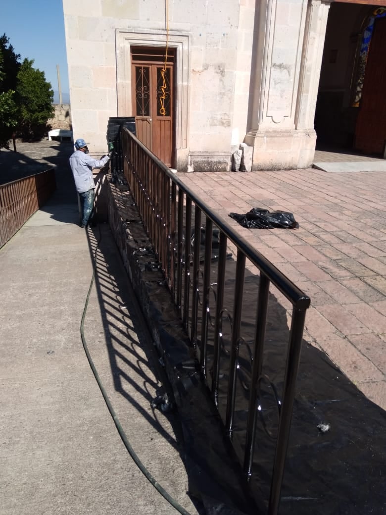 Jalpa, Zacatecas.- Como parte de los trabajos de mantenimiento y mejoramiento a espacios públicos y de esparcimiento el gobierno municipal encabezado por el alcalde Noé Esparza Martínez comenzaron con el mantenimiento en pintura al barandal de todo el santuario.