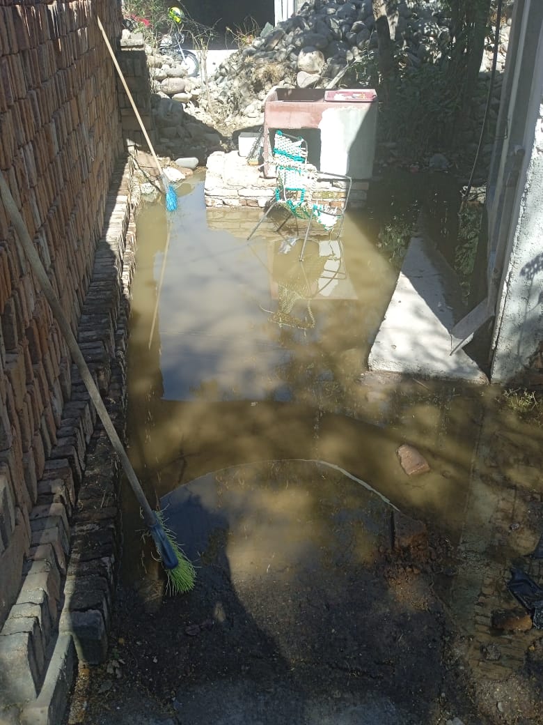 Hoy se puede observar como el agua residual, luego de un taponamiento, brota y se trasmina en calle y casas habitación de esta localidad, provocando un daño material y de salud pública, pues estamos hablando de desechos humanos y residuales de las comunidades y colonias aledañas.