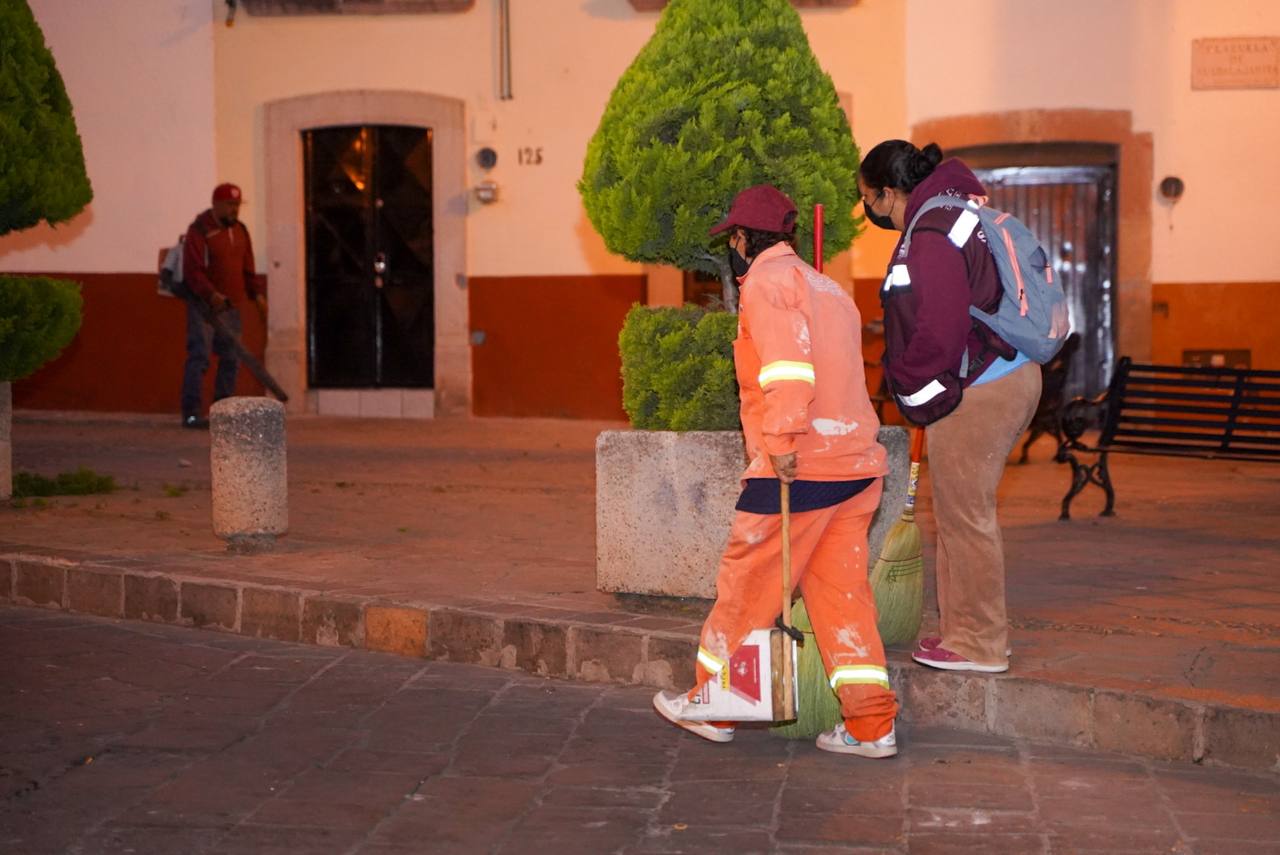 “Estamos quitando la mugre y grasa que se generan por la propia actividad de los comerciantes, vecinos y transeúntes, a quienes queremos pedirles que tengan un poquito más de higiene y de cuidado”, dijo.Esto debido a que se recoge mucha más basura de la acostumbrada, por lo que ejemplificó que en los contenedores que son para transeúntes, los vecinos ubican los desechos de sus hogares.Si bien es cierto, hay personal encargado de recolectar la basura y se tienen horarios específicos, tanto para recoger la de los contenedores, como la que se genera en los domicilios.Por ello, solicitó el apoyo de la ciudadanía para que juntos se tenga una capital digna y limpia.De esta manera, el presidente municipal de Zacatecas refrendó el interés por tener toda la capital limpia, no solo en la zona Centro, sino también en los barrios, colonias y demás comunidades. y los funcionarios capitalinos.Finalmente, y con motivo del Día de Reyes, el alcalde repartió algunas roscas para que las y los trabajadores de este departamento degustaran este producto gastronómico típico de las fechas.