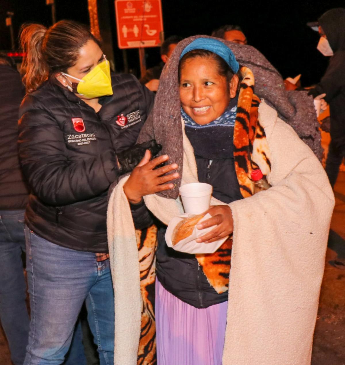 En representación de la Presidenta Honorífica del SEDIF, Sara Hernández de Monreal, visitaron el Hospital de la Mujer, Instituto Mexicano del Seguro Social (IMSS), Hospital General y el Instituto de Seguridad y Servicios Sociales para los Trabajadores del Estado (ISSSTE), donde entregaron más de 400 cobijas, 400 piezas de pan, 150 litros de café, kits sanitizantes y chamarras.