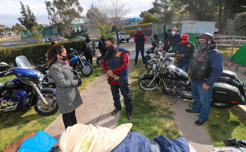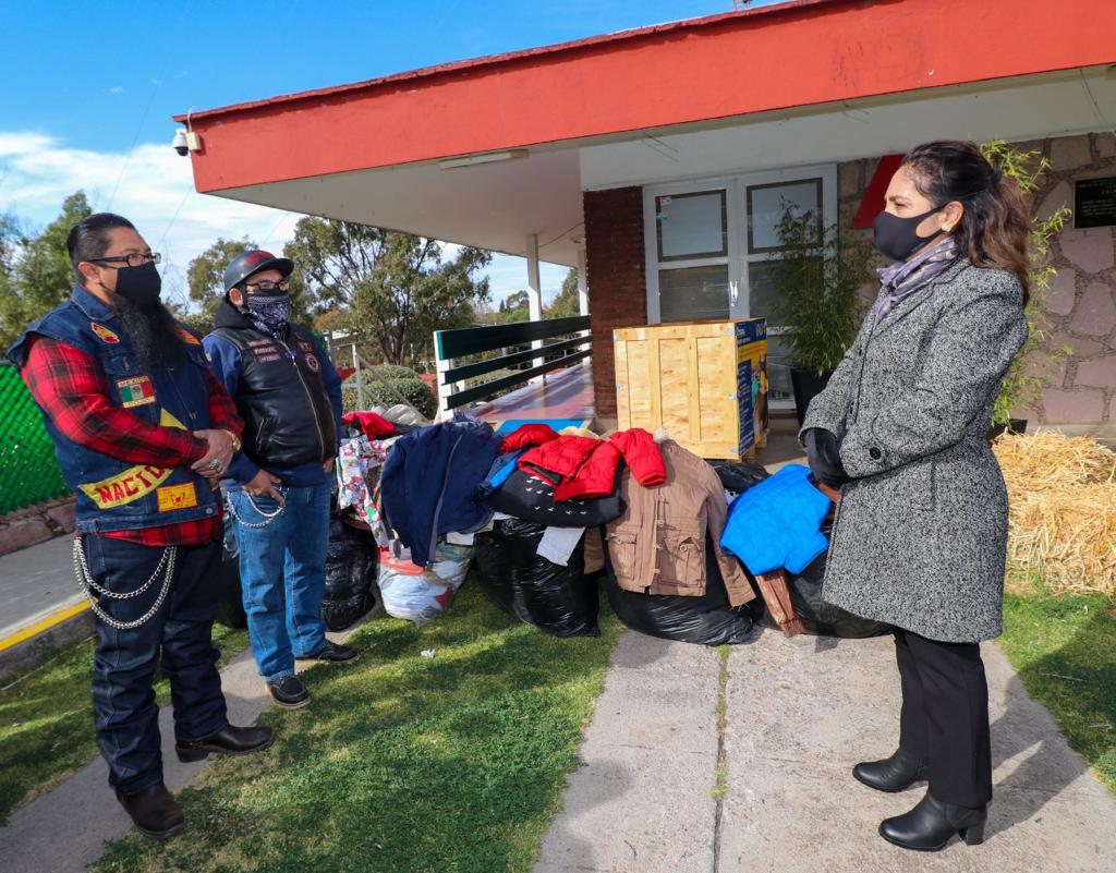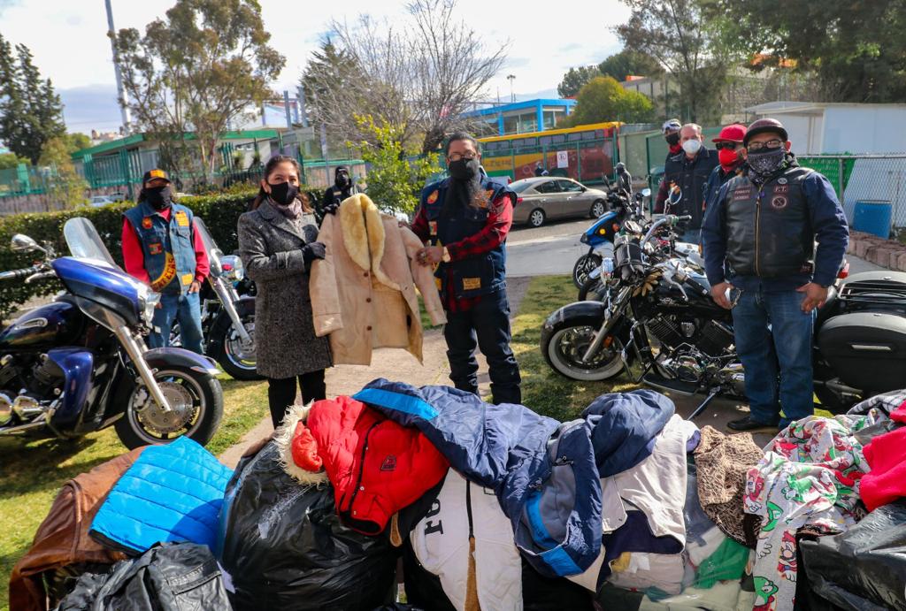 Un grupo de motociclistas encabezado por Efrén Moreno Burgos se dio cita en las oficinas centrales del DIF Estatal, donde hicieron entrega de diversas prendas como chamarras, suéteres, chalecos y pijamas para personas adultas y para niñas y niños.