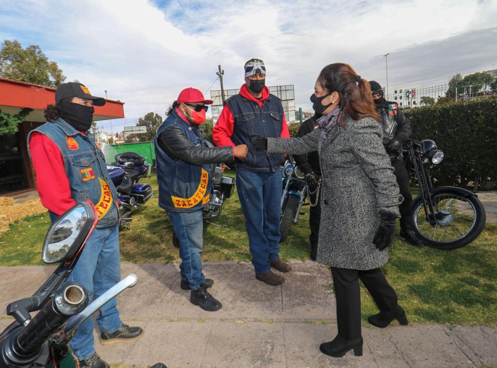 Zacatecas, Zac., 24 de enero de 2022.- Integrantes del Moto Club “Confederados” se sumaron a las acciones del Gobierno de Zacatecas, que encabeza el mandatario David Monreal Ávila, en busca del bienestar de las familias zacatecanas, por lo que entregaron un donativo de ropa invernal a la Presidenta Honorífica del Sistema Estatal para el Desarrollo Integral de la Familia (SEDIF), Sara Hernández de Monreal, como parte de la campaña que promueve con el programa “Abrigando a Zacatecas con Amor”.