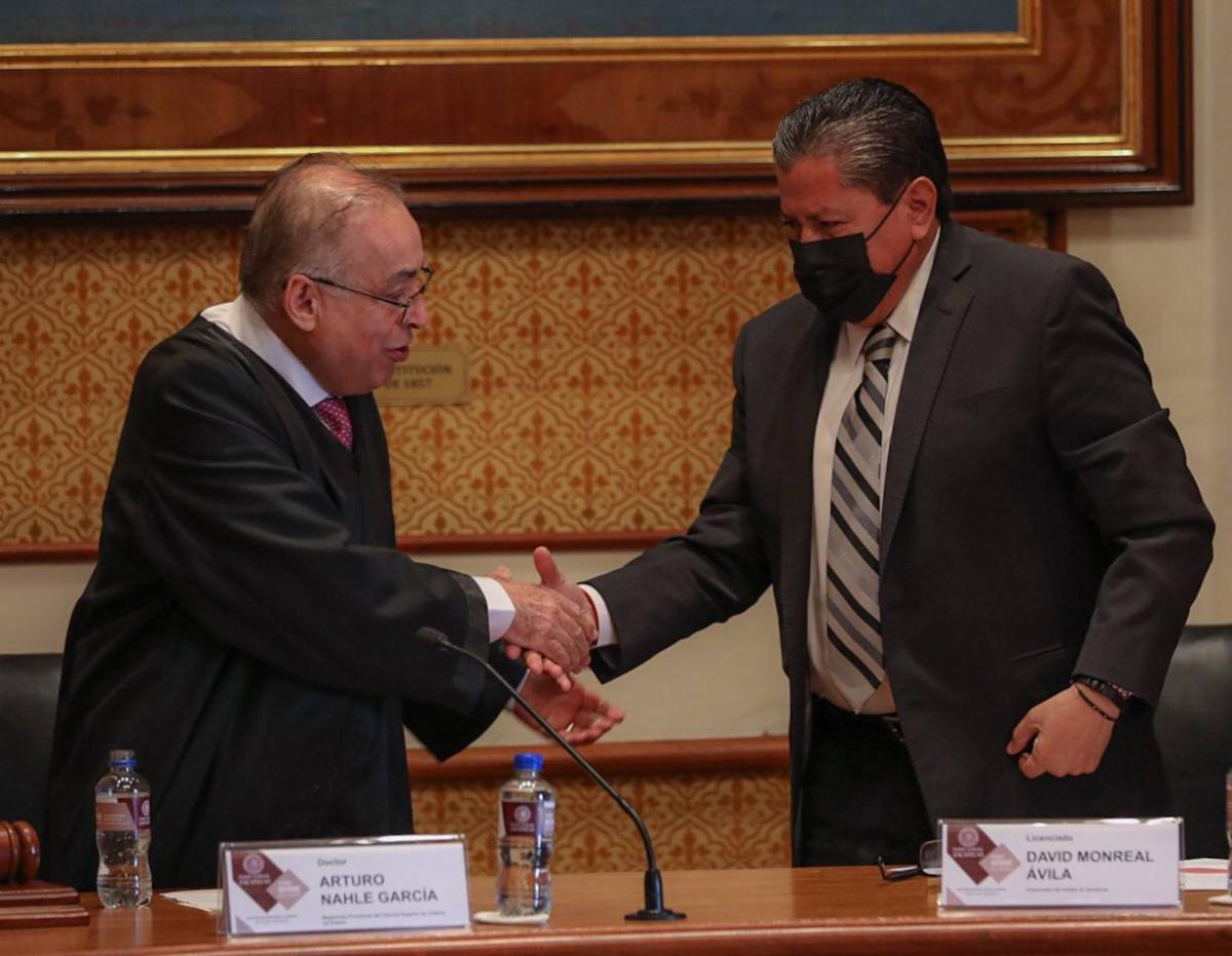 El Gobernador David Monreal celebró que el magistrado Arturo Nahle aceptara el compromiso de buscar una gran reforma administrativa en el Poder Judicial, que privilegie el combate a la impunidad, el respeto a los derechos humanos, la protección a las víctimas, el debido proceso, la erradicación del nepotismo, la transparencia, la paridad de género y la carrera judicial.