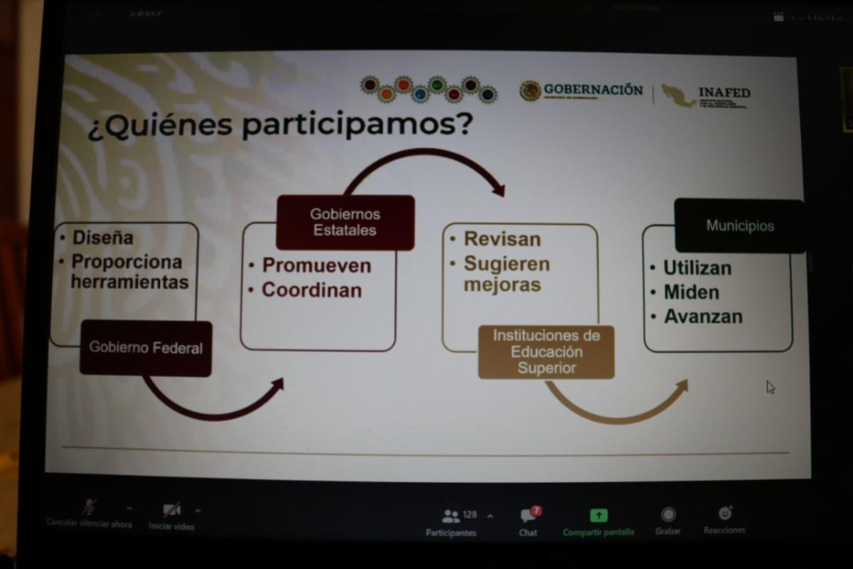 En reunión virtual, se informó que la Guía Consultiva de Desempeño Municipal 2022-2024 es una herramienta para incrementar las capacidades institucionales de los ayuntamientos y contribuir al mejor desempeño de la administración, además de brindar elementos conceptuales y metodológicos para su adecuada implementación.