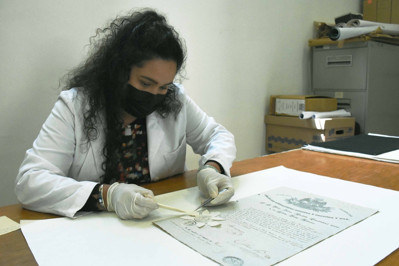 Zacatecas, Zac., 20 de marzo de 2022.- Personal de la Dirección General de Archivos implementó medidas de conservación para garantizar la salvaguarda de un documento histórico firmado por el expresidente Benito Juárez García en 1860, el cual, dado su valor testimonial, habrá de ser legado a futuras generaciones.