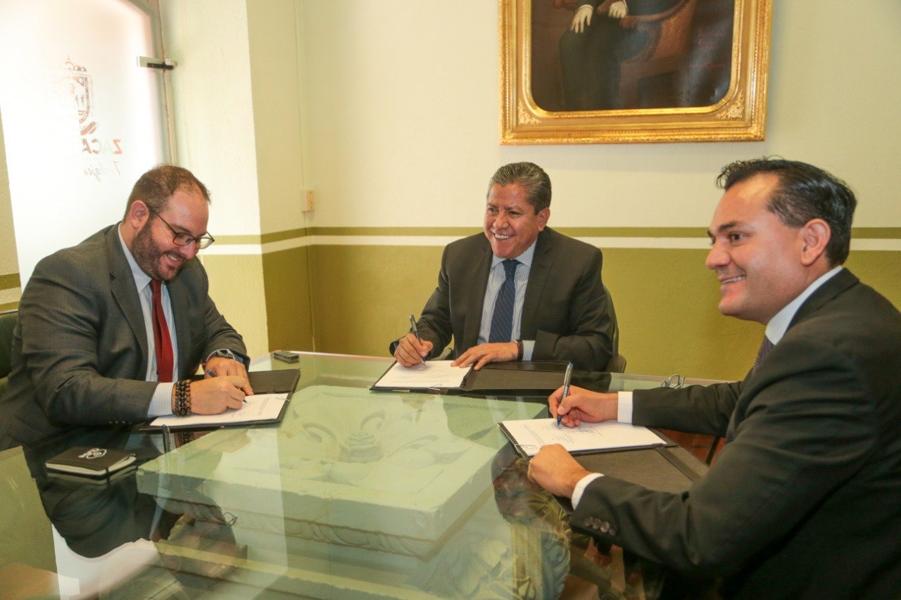 Además del Gobernador, en la firma del acuerdo estuvieron el Director General de Infotec, Federico C. González Waite y el Director General del Cozcyt, Hamurabi Gamboa Rosales.