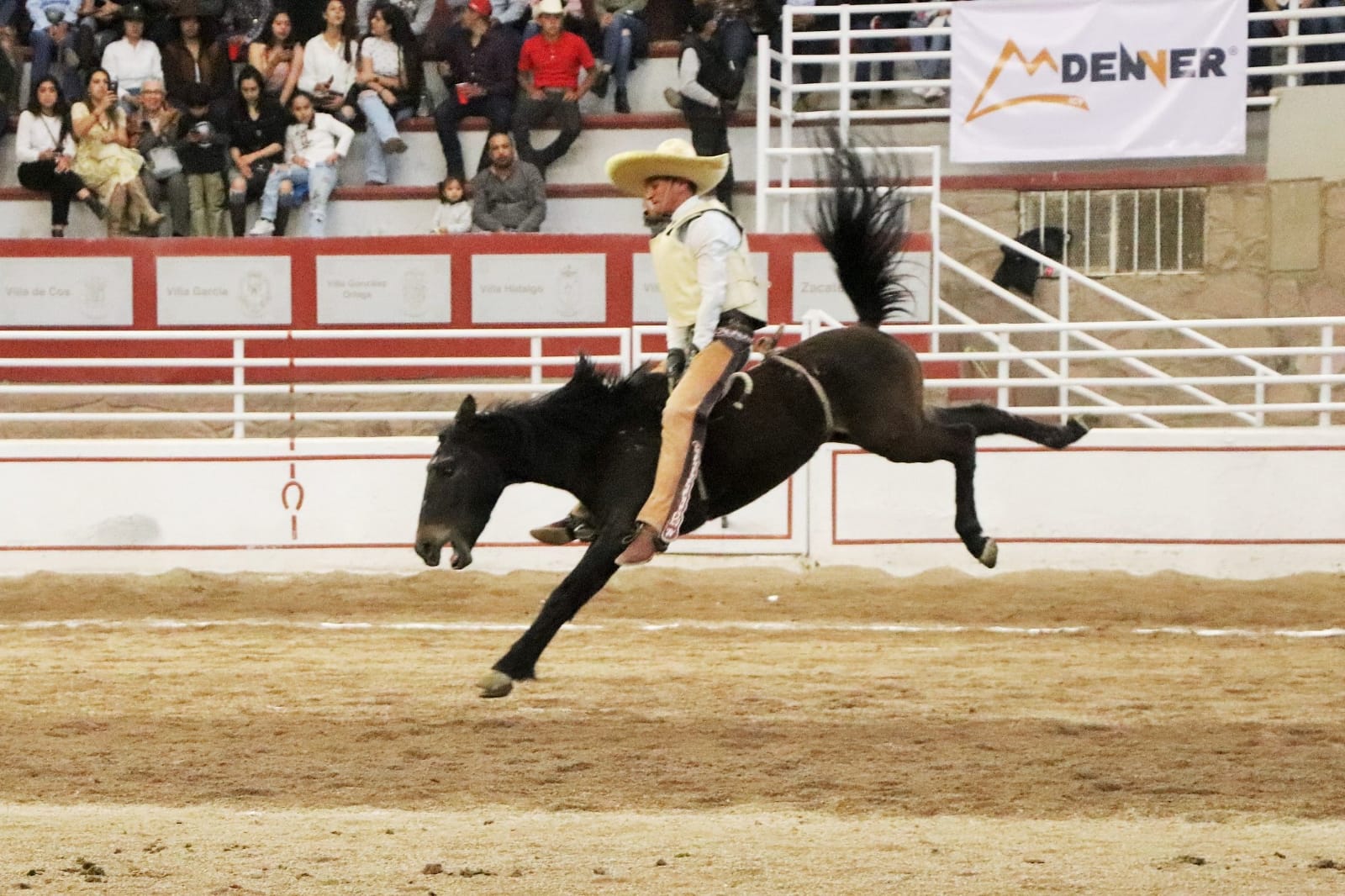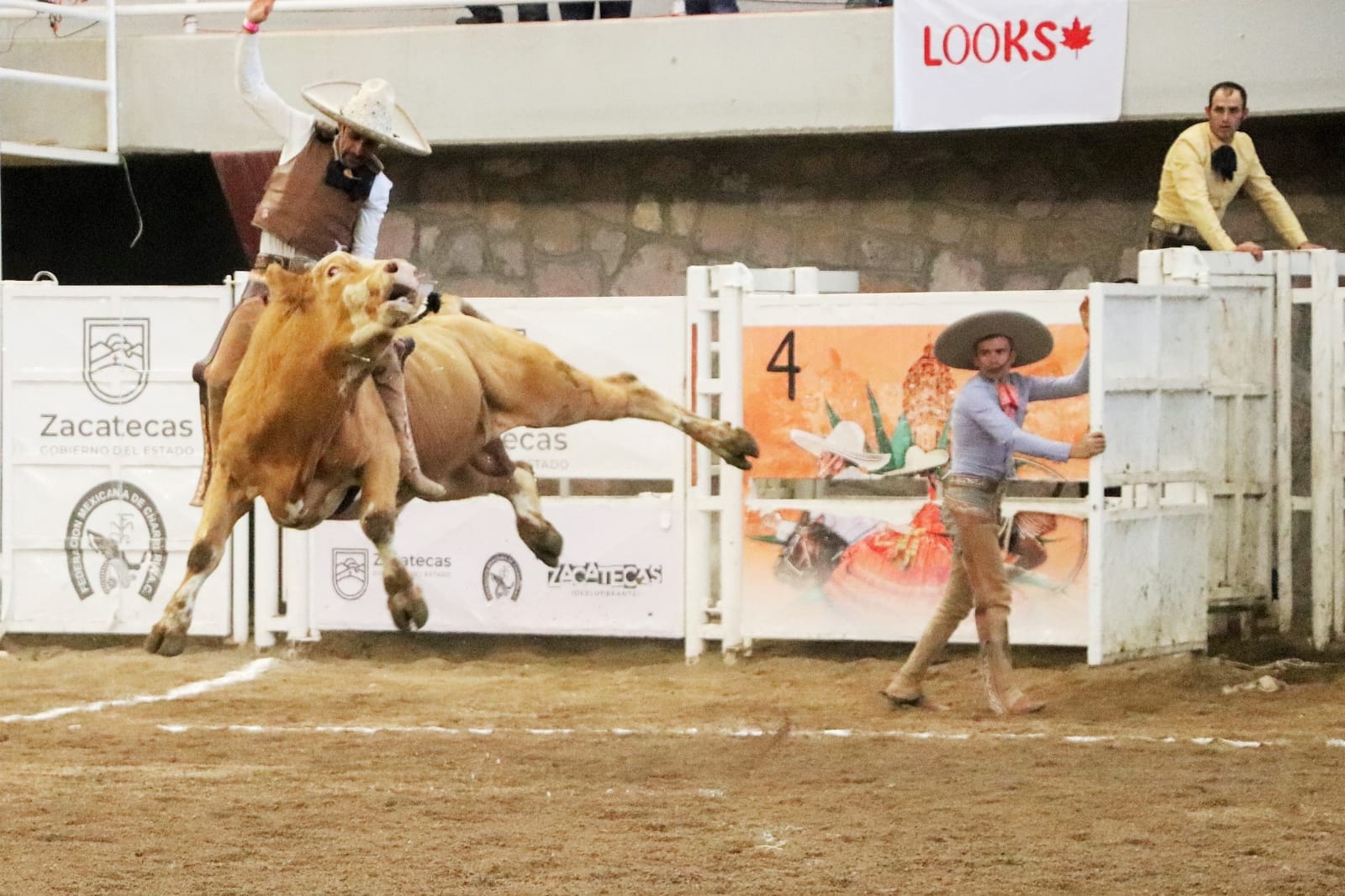 Frente a un Monumental Lienzo de Zacatecas que lució pletórico para observar a los finalistas del Congreso y Campeonato Charro Aguascalientes 2021, José Andrés Aceves Aceves, mejor conocido como “El Chiringas”, demostró porqué es uno de los mejores charros en el país y, pese a dejar escapar sus dos primeras manganas a pie para Rancho Las Cuatas, se fajó, sacó el carácter, la experiencia y logró su tercera.