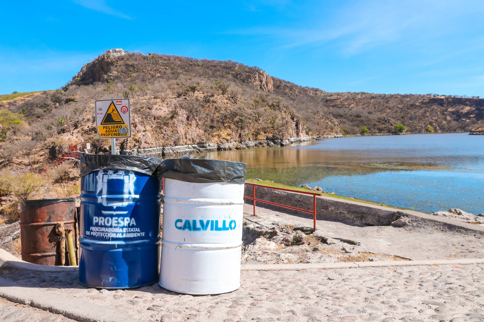 Calvillo, Aguascalientes.- El Gobierno de Calvillo en coordinación con la Procuraduría Estatal de Protección al Ambiente, llevó a cabo desde este miércoles, la instalación de 20 tambos para colocación de basura en los alrededores de la Presa de Malpaso.