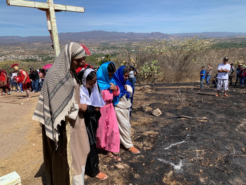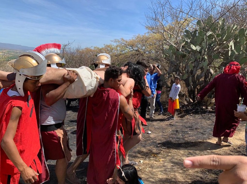 Hoy se conmemora la Pasión, Muerte y Resurrección de Jesús, de esta forma los católicos empezaron a llegar a la explanada del palacio municipal desde donde partieron los actores de la representación del viacrucis viviente, acto que termina en el cerro de la cruces en la parte alta del limpio, con rumbo al Santuario, en el caso de Jalpa.