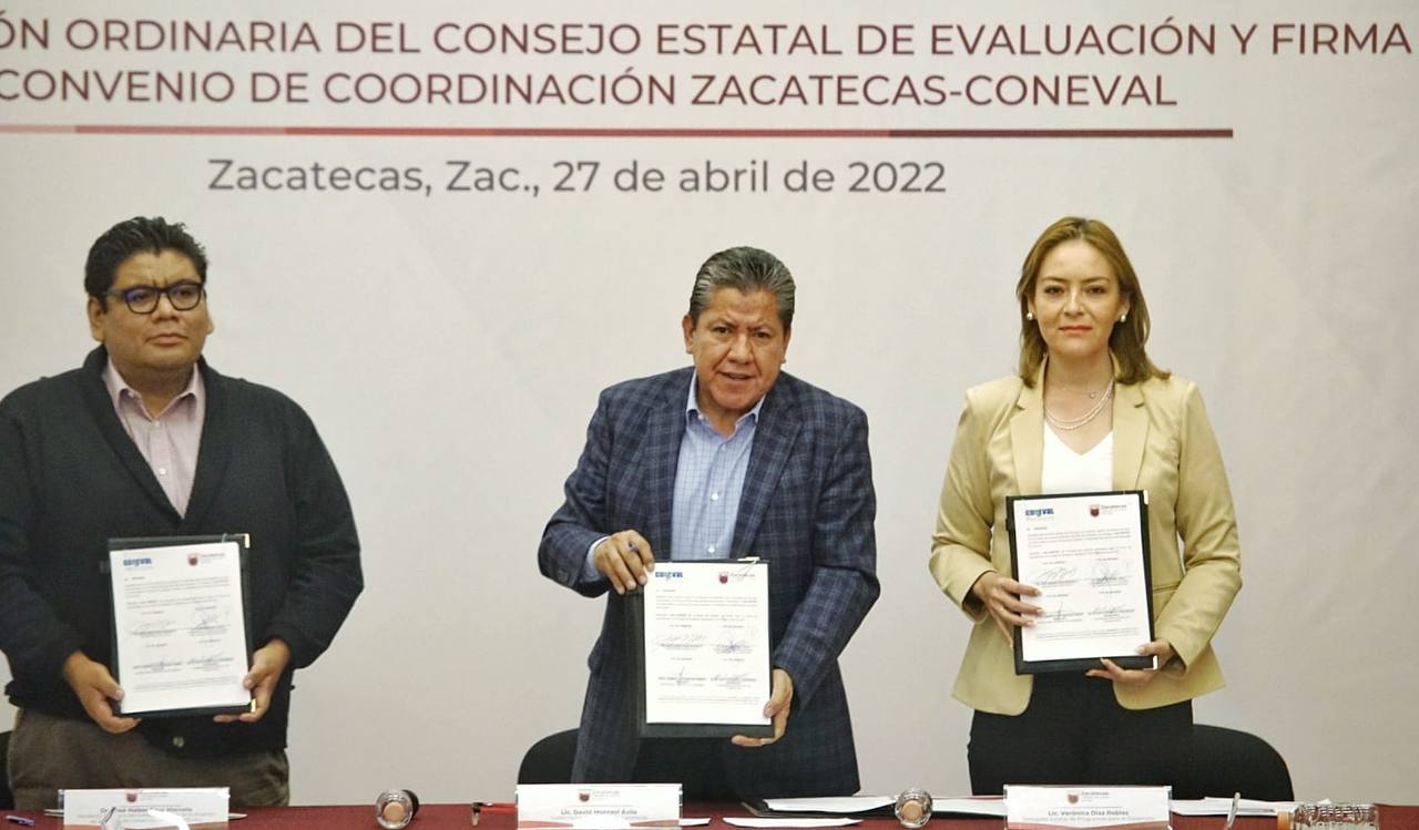 El documento fue rubricado por el Gobernador David Monreal Ávila, José Nabor Cruz Marcelo, secretario Ejecutivo del Coneval y Verónica Díaz Robles, delegada estatal de Programas para el Desarrollo, como representante del Gobierno de México.