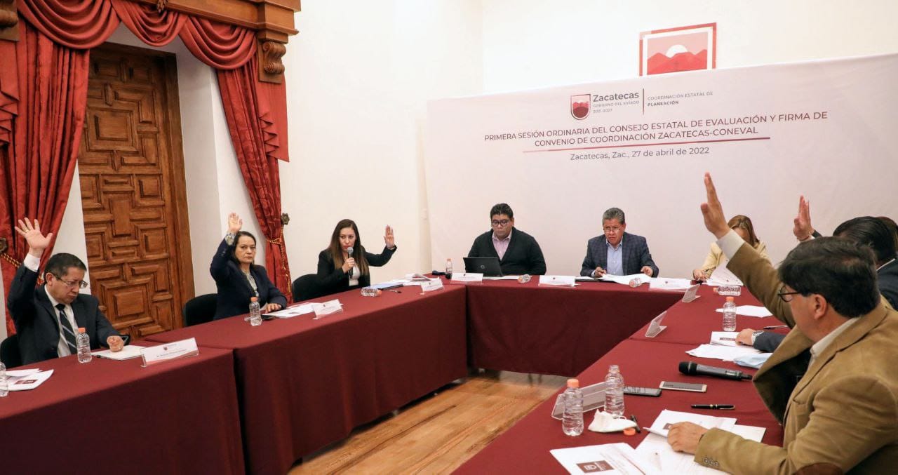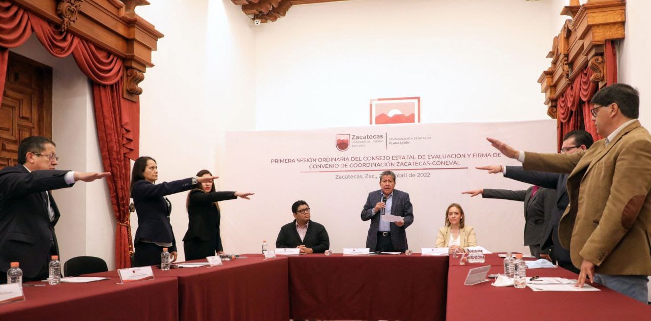 La firma del convenio con el Coneval se efectuó en el marco de la primera sesión ordinaria del Consejo Estatal de Evaluación, cuyos nuevos integrantes rindieron la protesta formal.
