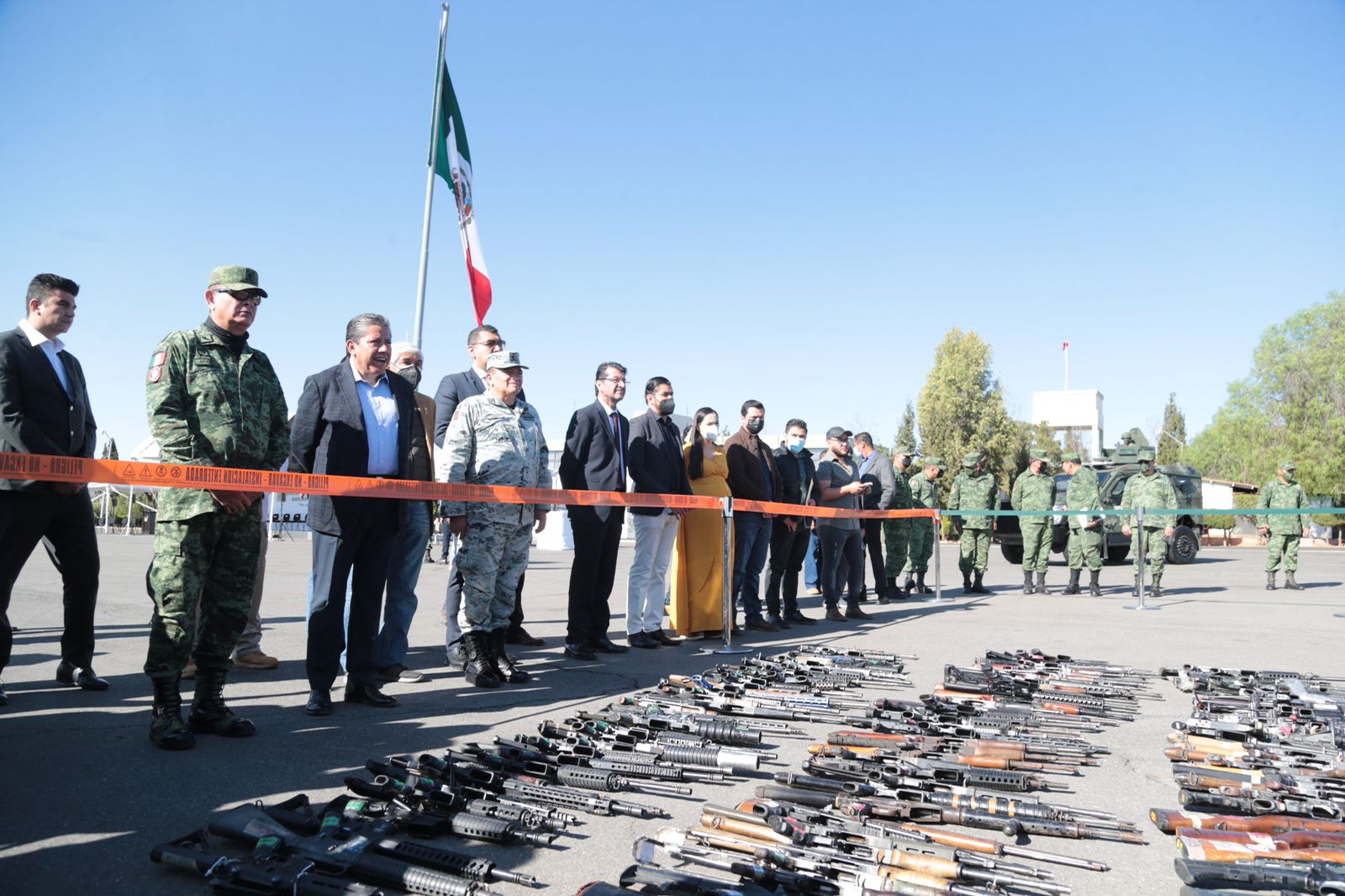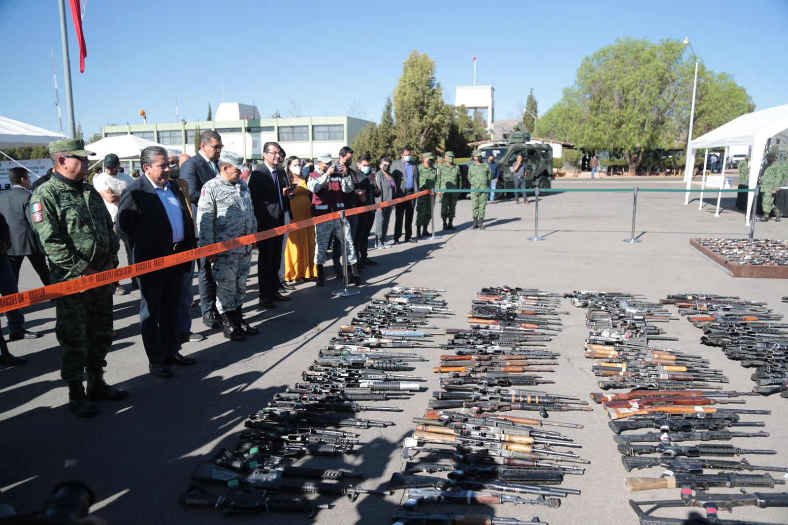 Como ejemplo, la presente destrucción del material bélico, que se hace de conformidad con lo establecido en el Reglamento del Ceremonial Militar, es resultado del trabajo, sacrificio y compromiso que tienen las diferentes autoridades con México y, principalmente, con el estado de Zacatecas, armamento que pudo haber causado incidentes lamentables o la comisión de delitos.