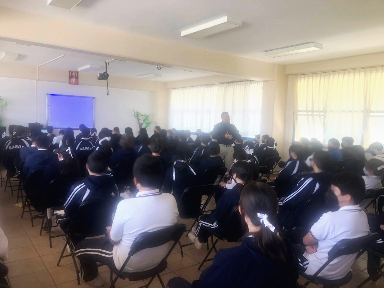 Guadalupe, Zac., 12 de mayo de 2022.- En el marco de la Estrategia de Seguridad para la Construcción de la Paz del Estado de Zacateca, la Secretaría de Seguridad Pública capacitó a personal docente y alumnos del Colegio Sebastián Cabot, en Guadalupe.