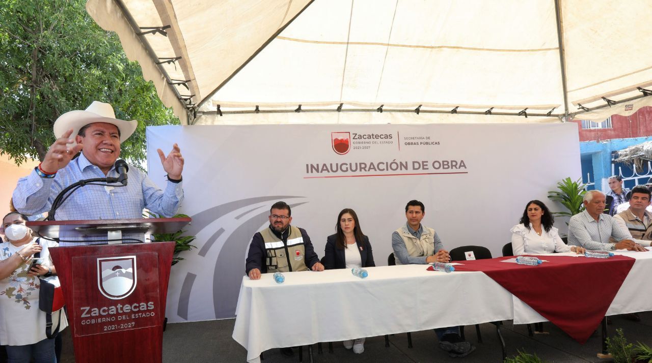 Guadalupe, Zac., a 12 de mayo del 2022.- El Gobernador David Monreal Ávila y el Presidente Municipal de Guadalupe, Julio César Chávez Padilla, firmaron un convenio para la realización de infraestructura social básica por 22 millones de pesos, que permitirá atender las necesidades, en este rubro, del segundo municipio más importante del estado. Además, este día, el mandatario inauguró la rehabilitación de cuatro calles en la comunidad Tacoaleche.