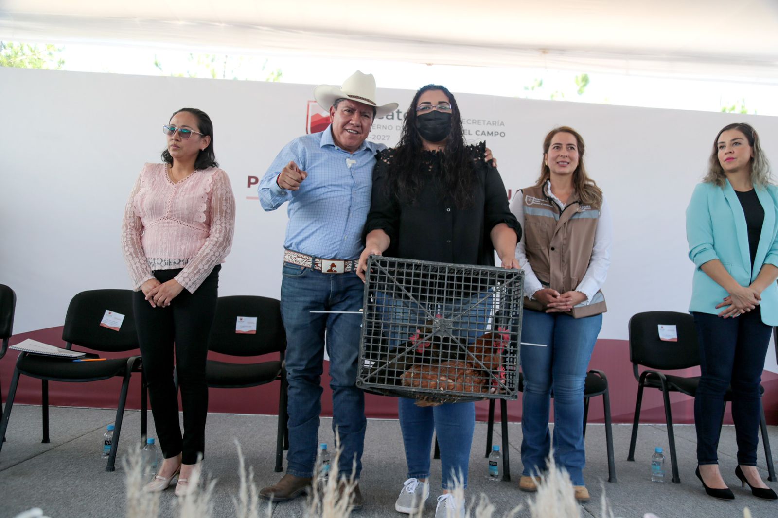 Esta tarde, se reunió con cientos de beneficiarios que recibieron complementos nutricionales, granjas de traspatio, huertos de nopal, maquinaria, semillas certificadas, tuberías para líneas de conducción y diversos tipos de subsidios para apoyar el autoconsumo y la comercialización de los productos.