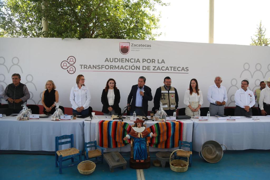 Luego de entregar mobiliario, kits de limpieza, muletas y sillas de ruedas, el Gobernador David Monreal dio respuesta inmediata y, en sus respectivos casos, ofreció equipar instituciones educativas, reparación y ampliación de drenaje, acondicionamiento de una pista de tartán, apoyos para construir techos de losa, así como continuar con el apoyo de becas escolares,