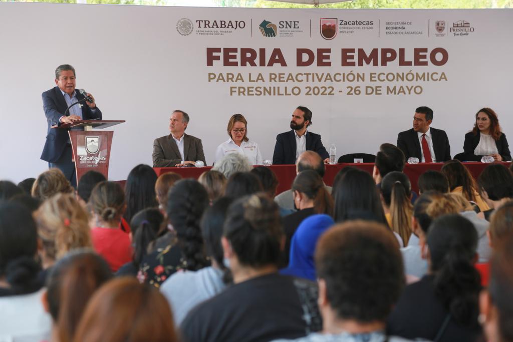 Por lo que, al encabezar el acto inaugural, acompañado del titular del Servicio Nacional de Empleo del Gobierno de México, Rodrigo Ramírez; la Delegada de Programas para el Desarrollo, Verónica Díaz Robles y Argelia Aragón Galván, síndica municipal y representante del presidente municipal Saúl Monreal Ávila, quien no pudo asistir por motivos de salud, el mandatario aseguró a buscadores de empleo, estudiantes, directivos de empresas y de instituciones educativas que no va a desistir en encauzar a este estado al desarrollo regional y nacional.