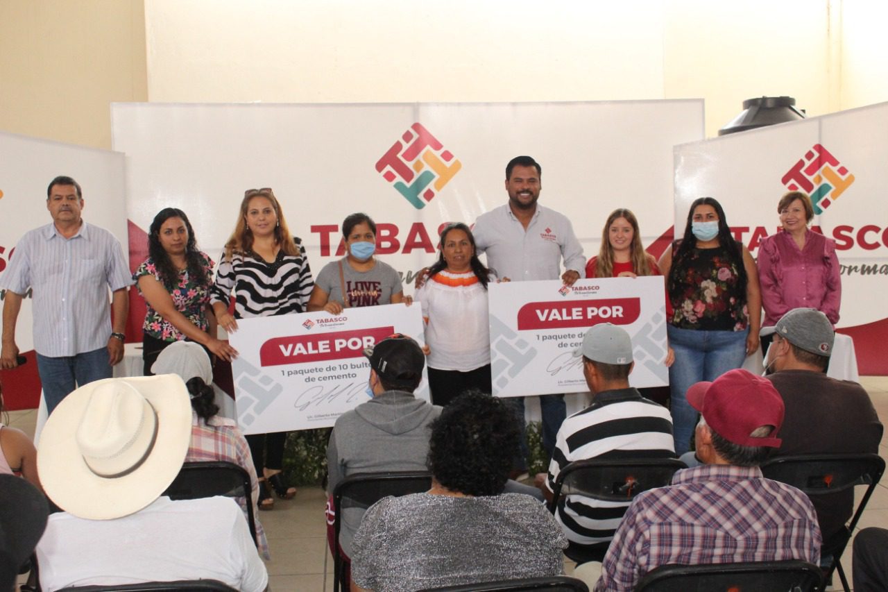 – El Presidente Municipal se dijo satisfecho porque esta entrega de paquetes de cemento mejorará la calidad de vida de las familias tabasquenses