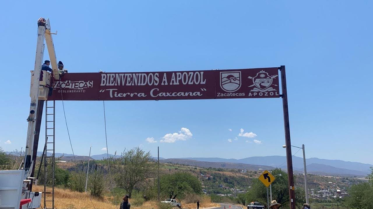 Apozol, Zacatecas.- Después de varios años en que permaneció inamovible el letrero de bienvenida, el Gobierno Municipal que preside la alcaldesa Gabriela Arellano Quezada, a través de la Dirección de Obras y Servicios Públicos, llevó a cabo la instalación de la nueva portada de acceso a la cabecera municipal acorde a la normativa de la actual administración.