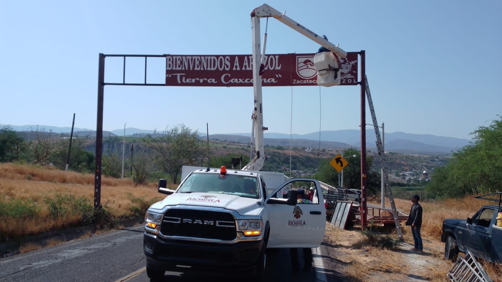 Por otro lado agradeció al Gobierno Municipal de Juchipila, que preside la Maestra María del Rocío Moreno Sánchez, por haber facilitado el Camión Grúa con Canastilla para llevar a cabo estos trabajos.