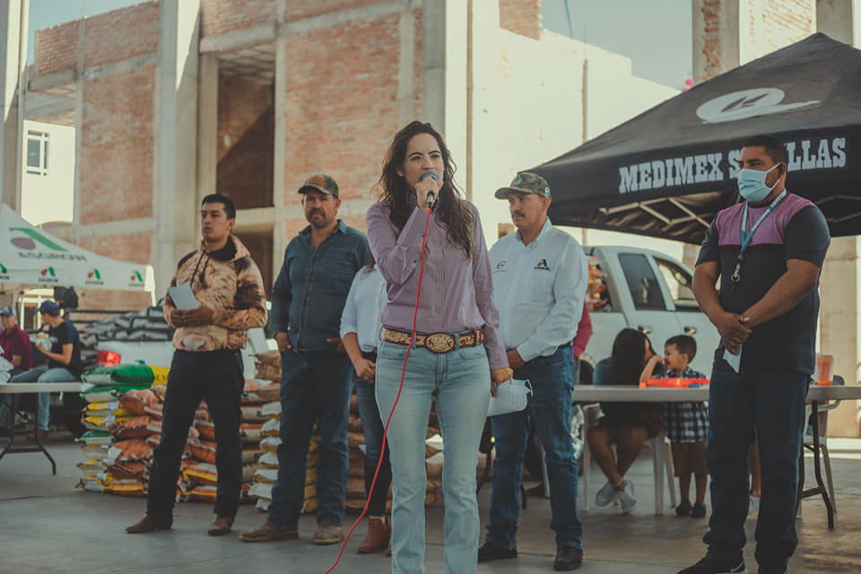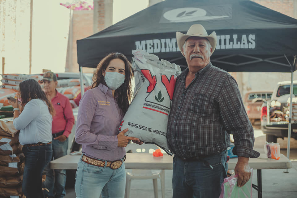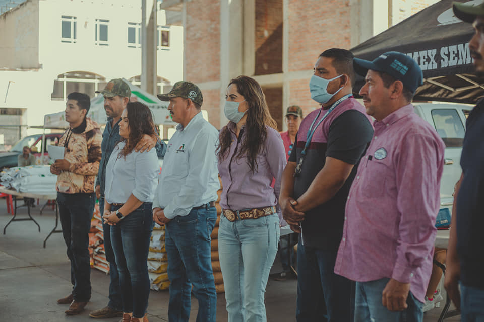 Por ello en un evento simbólico realizado en la explanada del teatro del pueblo se hizo la entrega de apoyos a 96 productores con 300 bultos de semilla de maíz de 17 variedades, 31 bultos de semillas de Sorgo en 2 variedades y 680 kilogramos de pasto Rodex y Bufel.