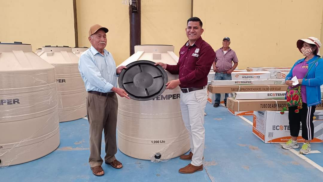 Gracias a las gestiones realizadas por el Edil Noé Esparza quien realiza gestiones ante la Congregación Mariana Trinitaria A. C. para lograr la entrega de tinacos con el fin de mejorar las condiciones de vida de las familias de este municipio.
