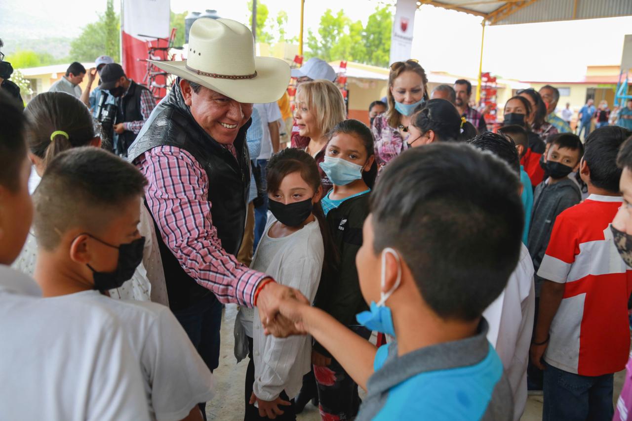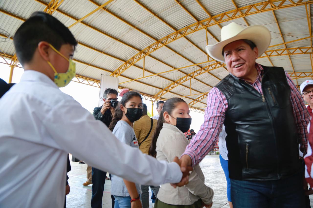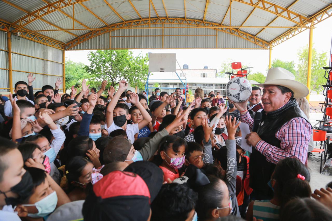 Luego de entregarles balones y bolos, el Gobernador David Monreal Ávila les aseguró que en este municipio también recibirán uniformes gratuitos todas las niñas y los niños que asistan a educación básica, además, por ser uno de los territorios del estado con más necesidad, hasta allá también se harán llegar mochilas.