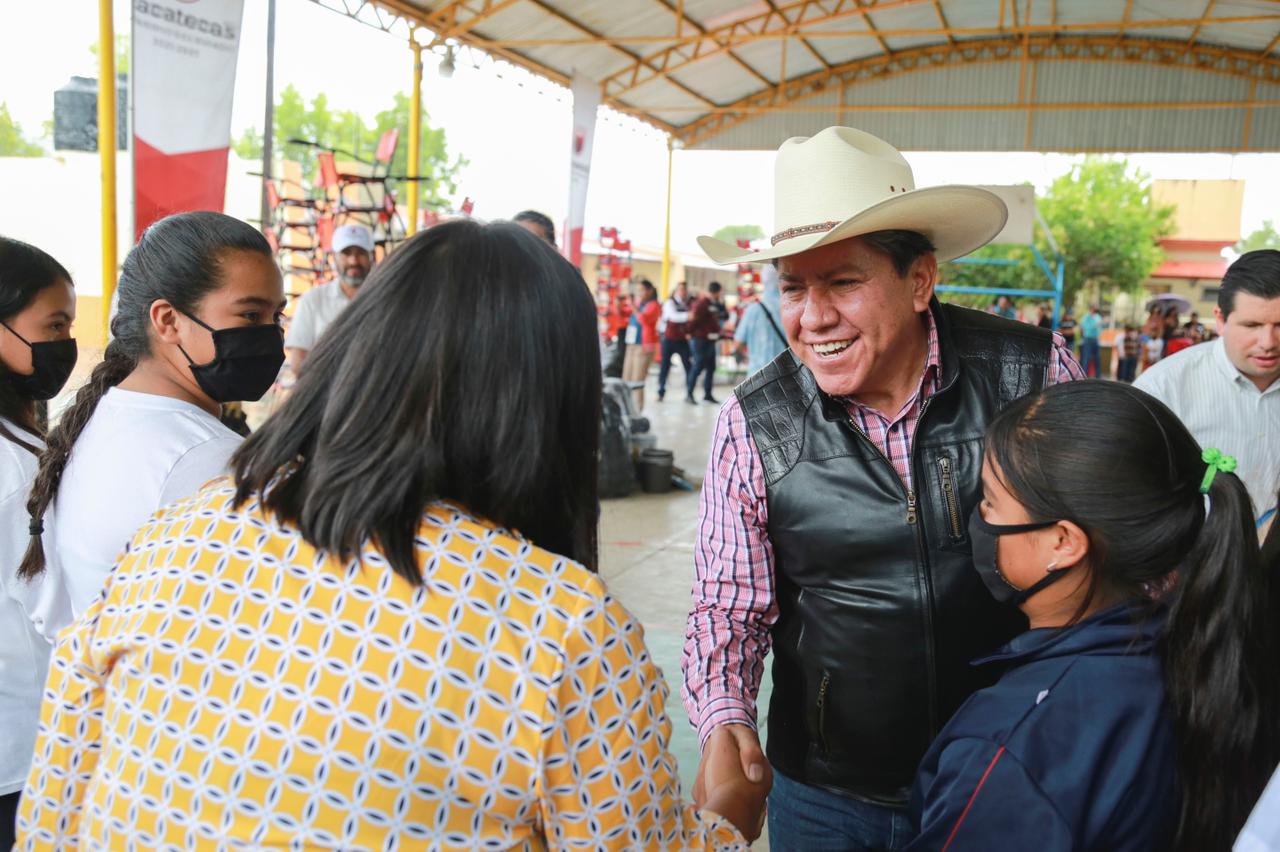 Entrega Gobernador David Monreal uniformes, útiles escolares, material de limpieza y mobiliario a escuela de Jiménez del Teul