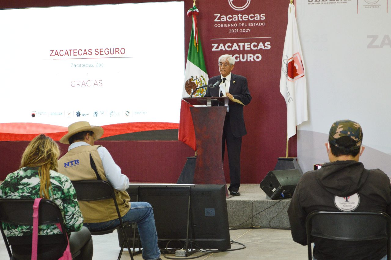 Zacatecas, Zac.- Tras los diversos hechos delictivos que se registraron a lo largo de la semana en el territorio estatal, el Secretario de Seguridad Pública, General Adolfo Marín Marín, aseguró que en Zacatecas no se escatiman esfuerzos, ni se baja la guardia, pues, a la par de las acciones operativas y presencia de efectivos policiales, se coordinan esfuerzos para recuperar los valores, reconstruir el tejido social y avanzar en la recuperación de la paz.