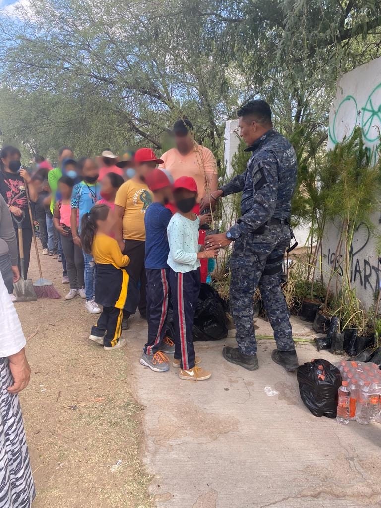 En este punto, lo efectivos policiales, en conjunto con las y los ciudadanos del municipio, plantaron árboles para mantener una buena imagen y cuidar de los espacios públicos para el sano desarrollo de la comunidad.