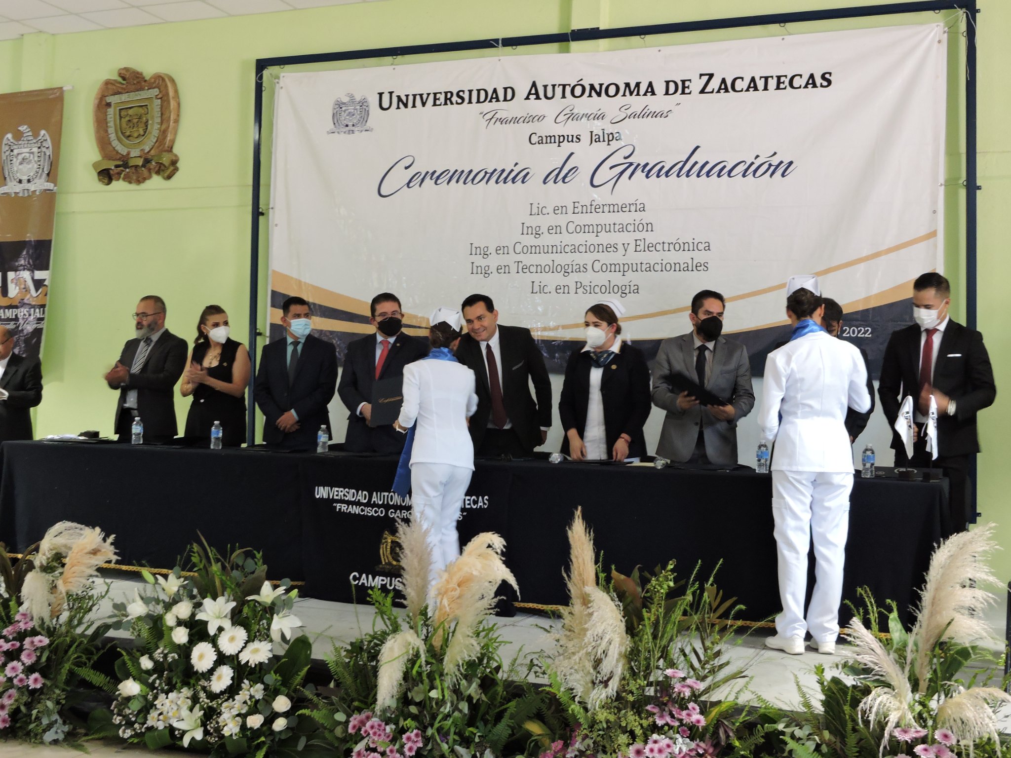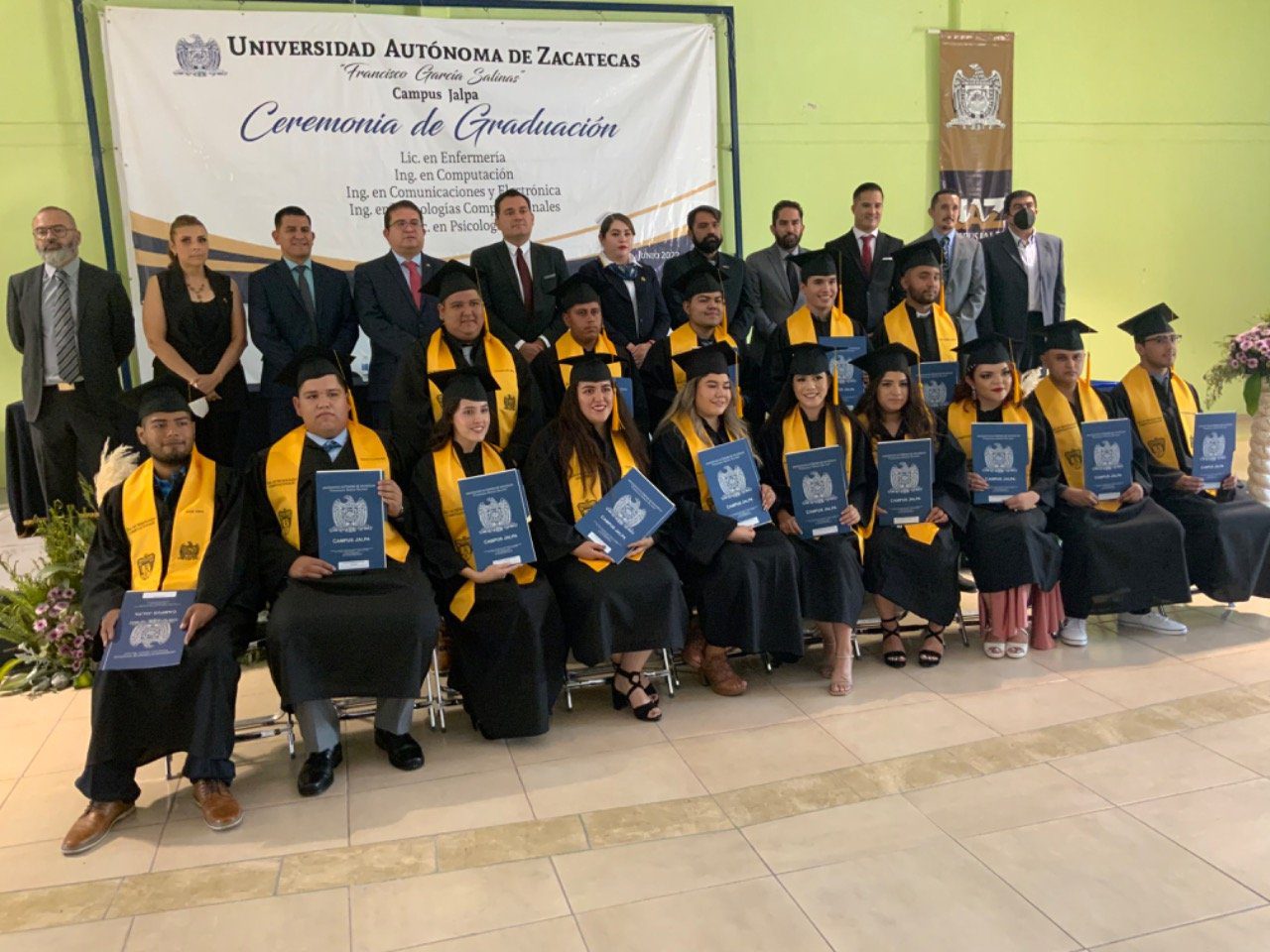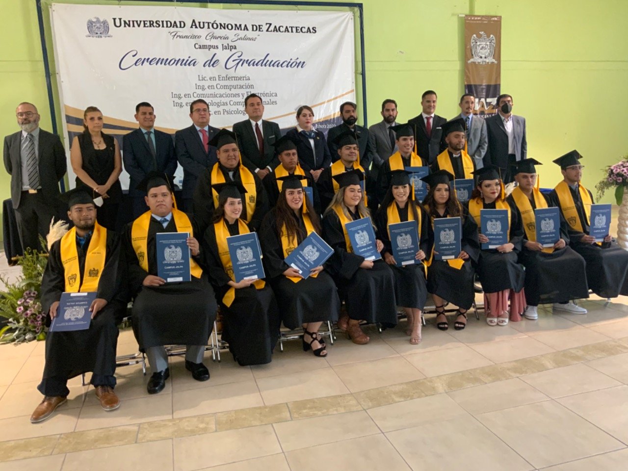 En esta ceremonia de graduación de la UAZ campus Jalpa, egresaron 46 profesionistas de las carreras de Lic. En Psicología, Lic. En Enfermería, Ing. En Computación, Ing. En Comunicaciones y Electrónica, Ing. En Tecnologías Computacionales.