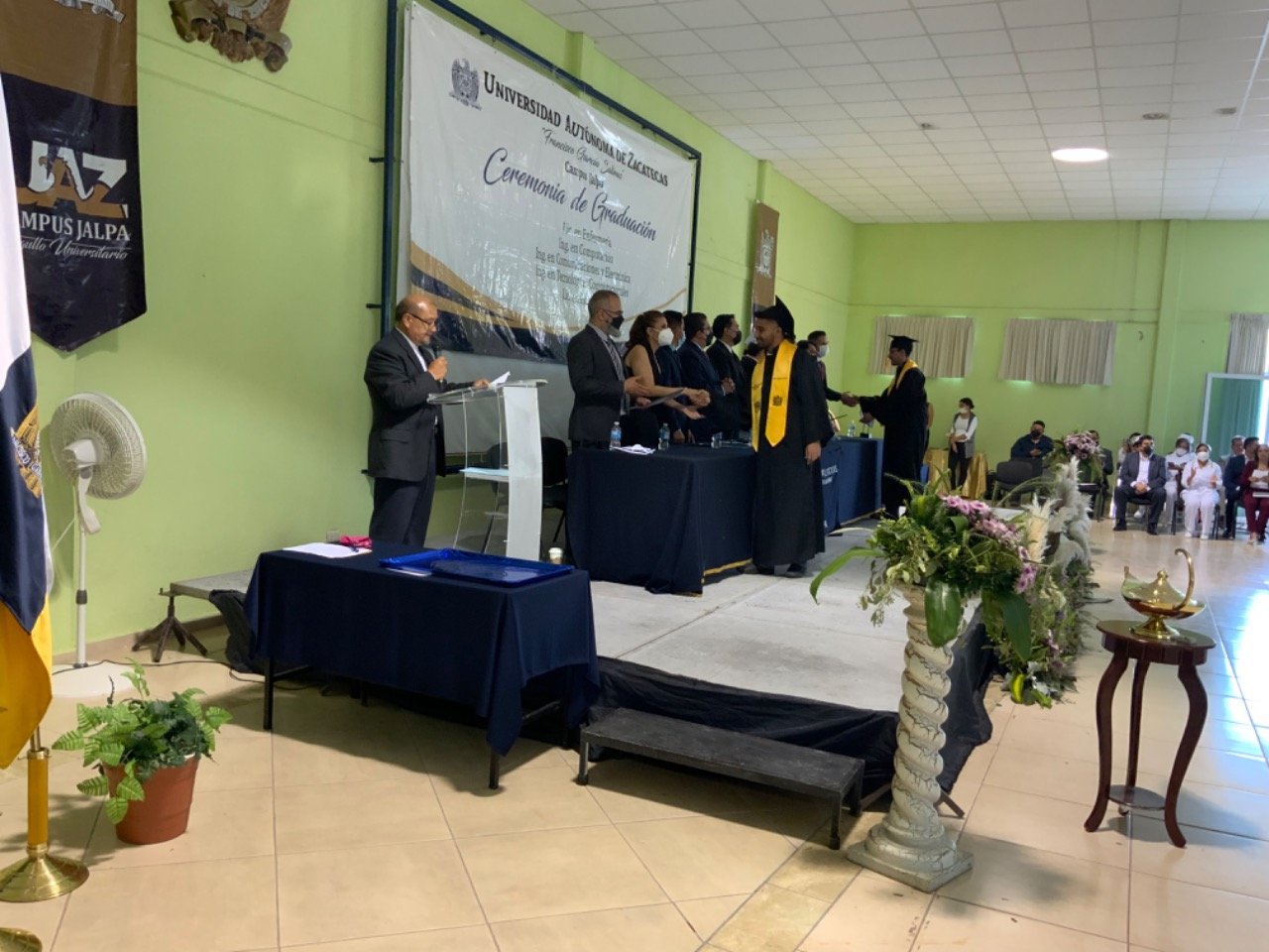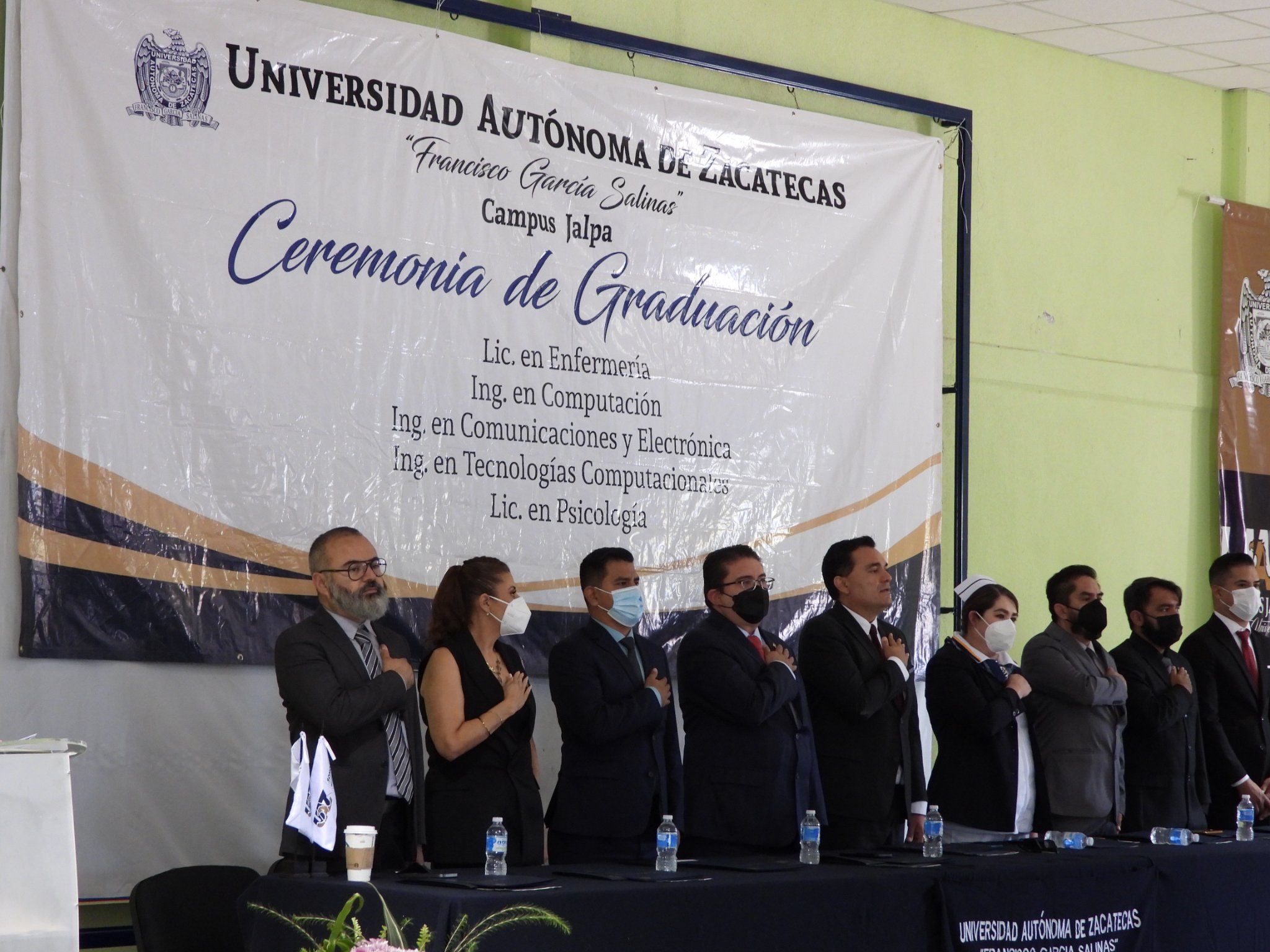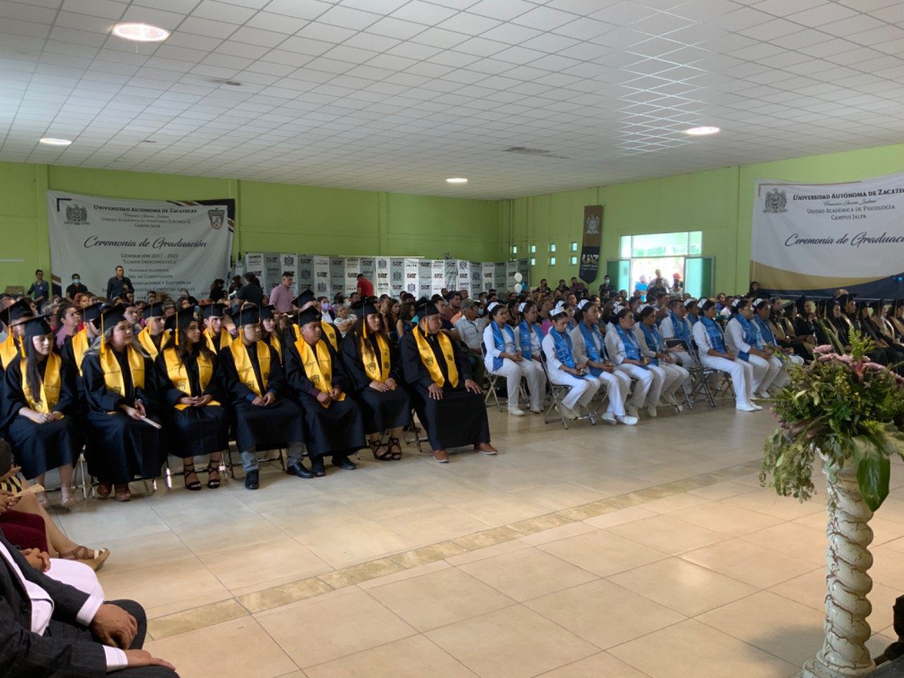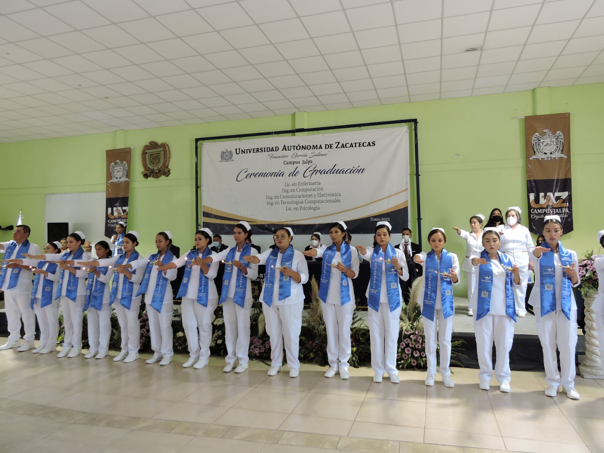 En esta ceremonia de graduación de la UAZ campus Jalpa, egresaron 46 profesionistas de las carreras de Lic. En Psicología, Lic. En Enfermería, Ing. En Computación, Ing. En Comunicaciones y Electrónica, Ing. En Tecnologías Computacionales.