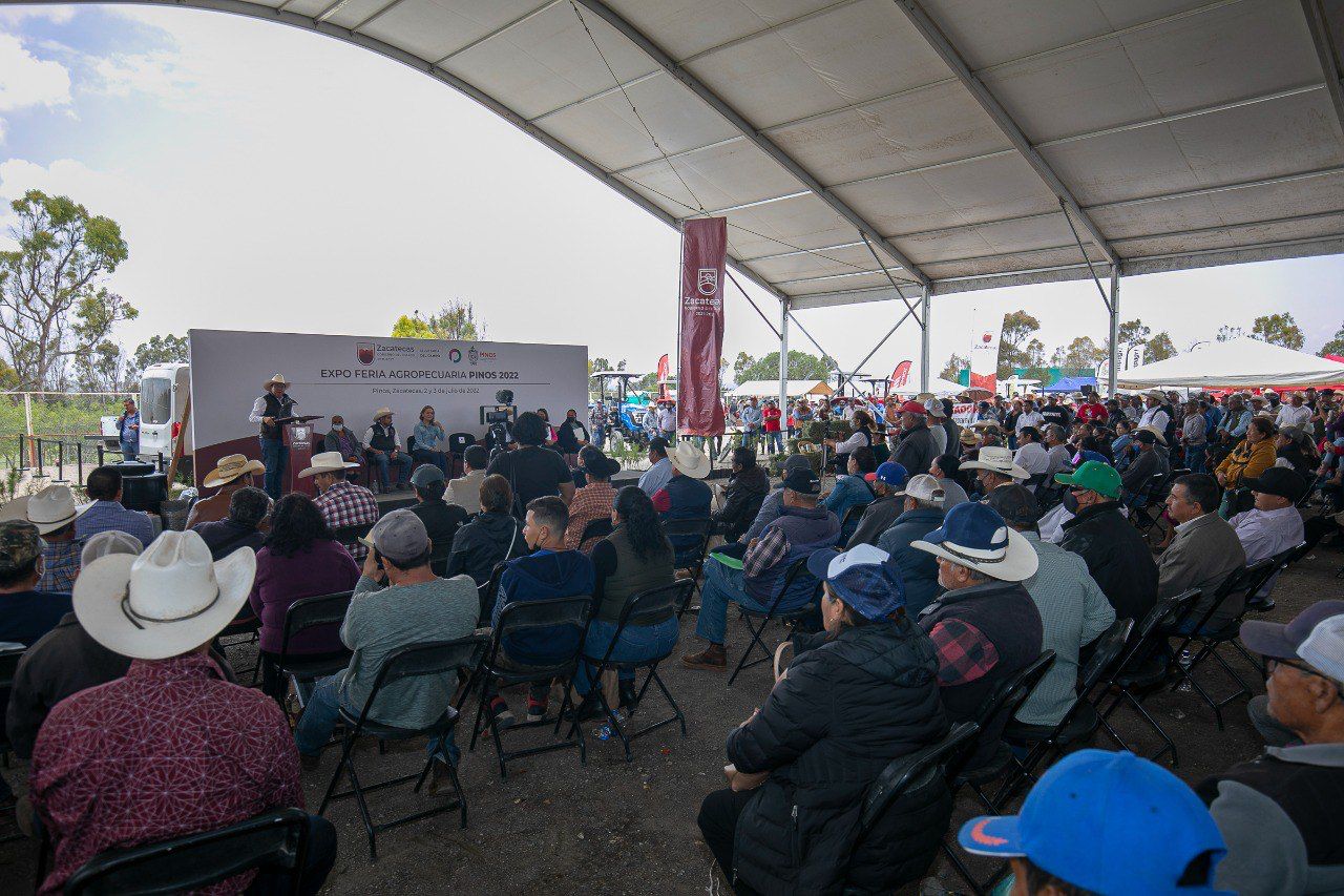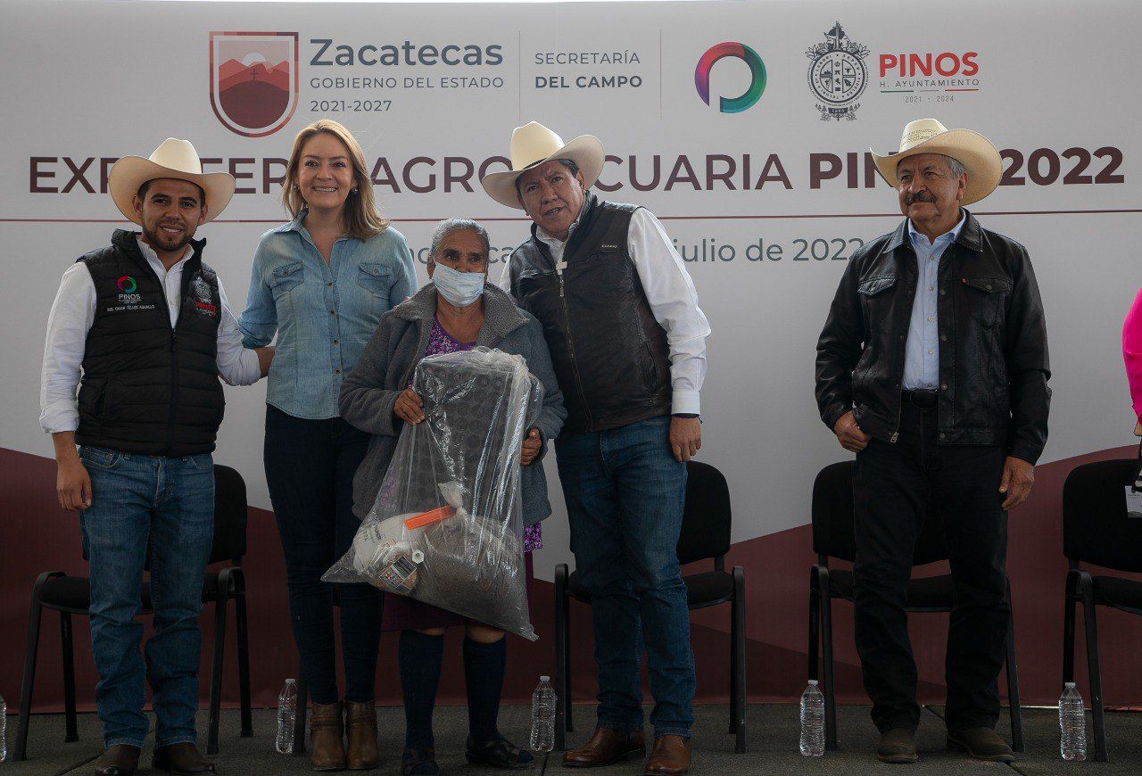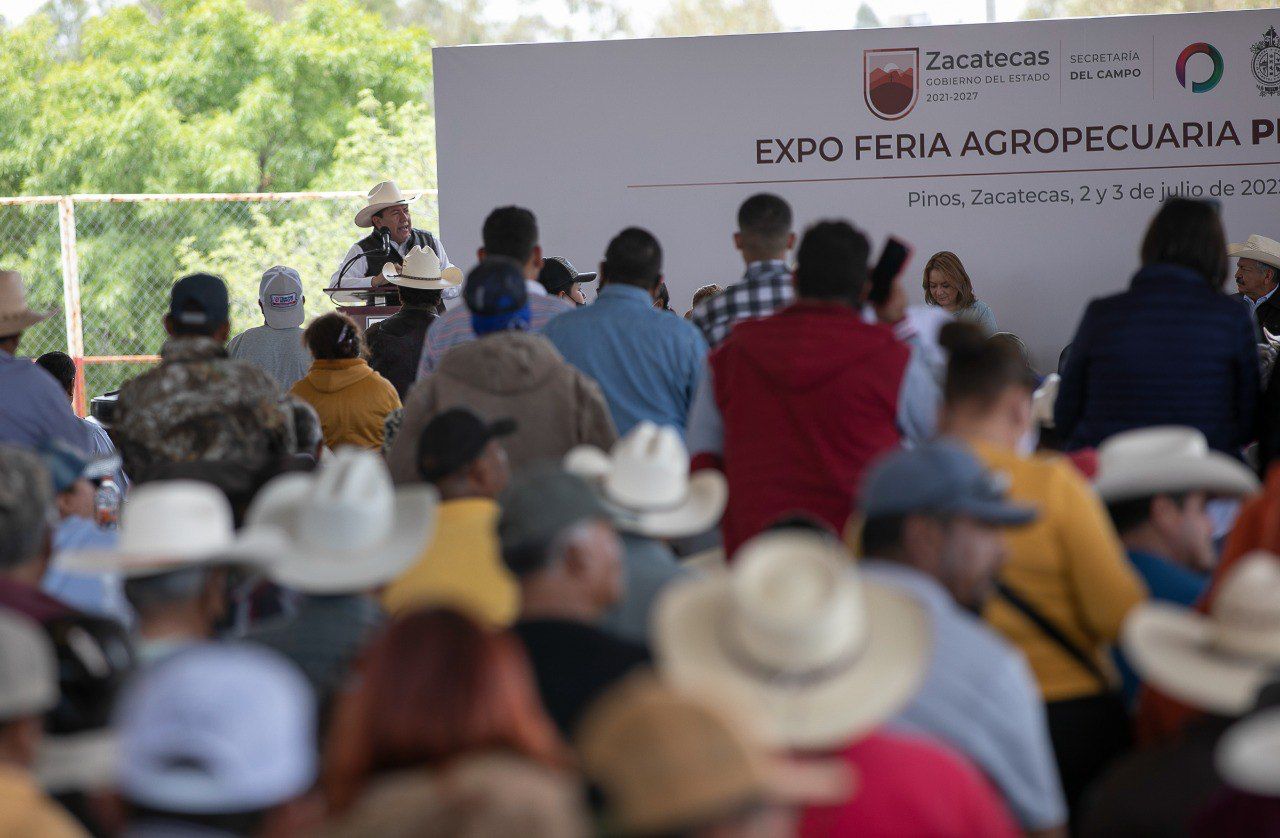 “Estoy empeñado en demostrar que con el campo se puede lograr la transformación y el desarrollo; Pinos merece mejor suerte y, en una gran comunión social, vamos a salir adelante”, expresó el mandatario estatal, acompañado por el presidente municipal de Pinos, Omar Téllez Aguayo, así como los alcaldes de Villa Hidalgo, Villa García, Villa González Ortega y Loreto.