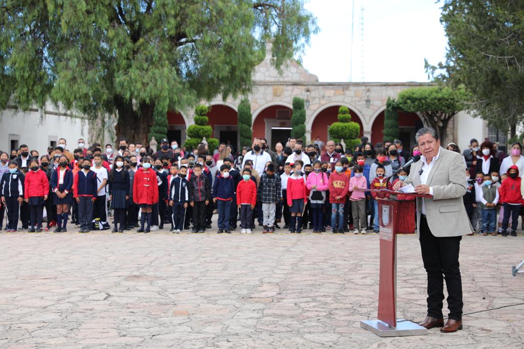 – El mandatario encabezó la ceremonia de honores a la Bandera en Susticacán