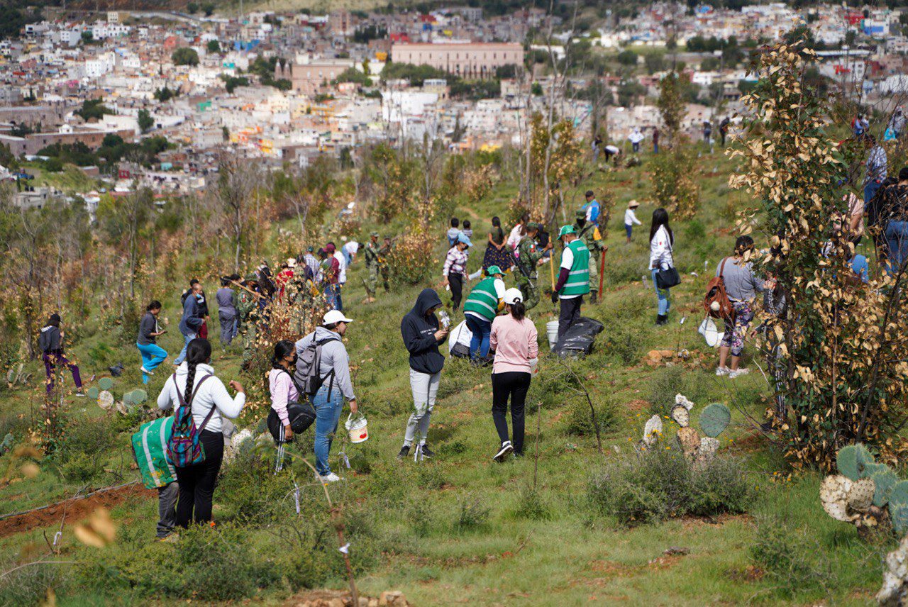 A través del Sistema DIF Municipal, encabezado por su presidenta honorífica, Maribel Herrera de Miranda, el Ayuntamiento de Zacatecas inició la primera etapa de reforestación del Cerro de la Bufa.