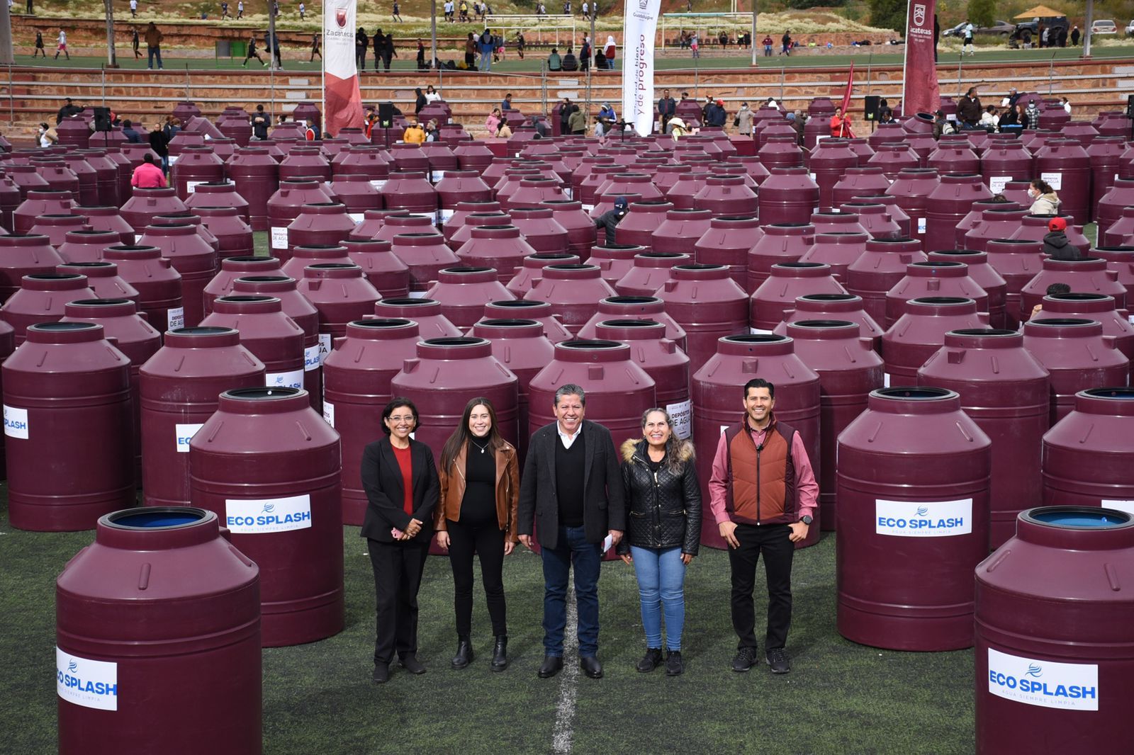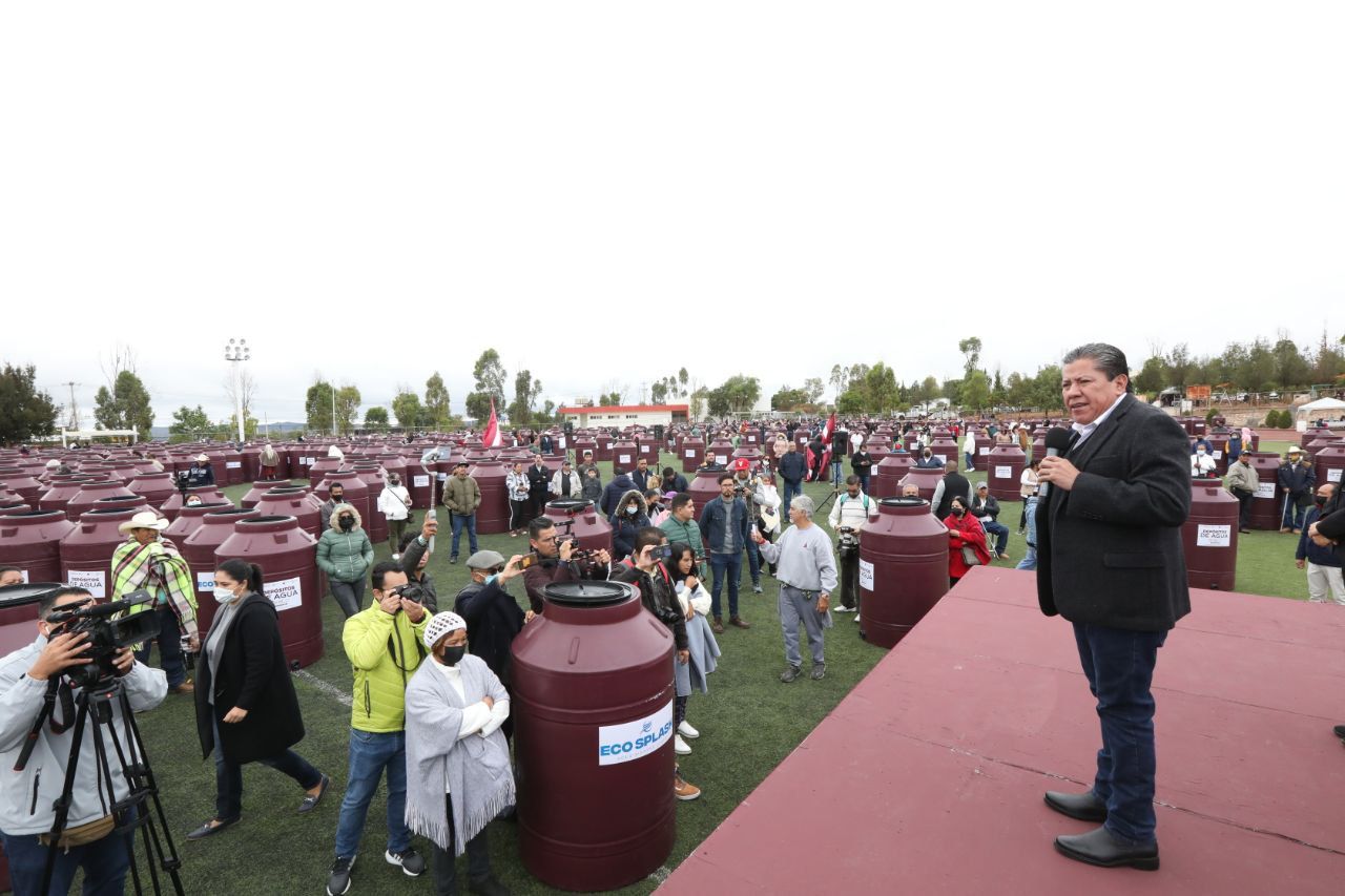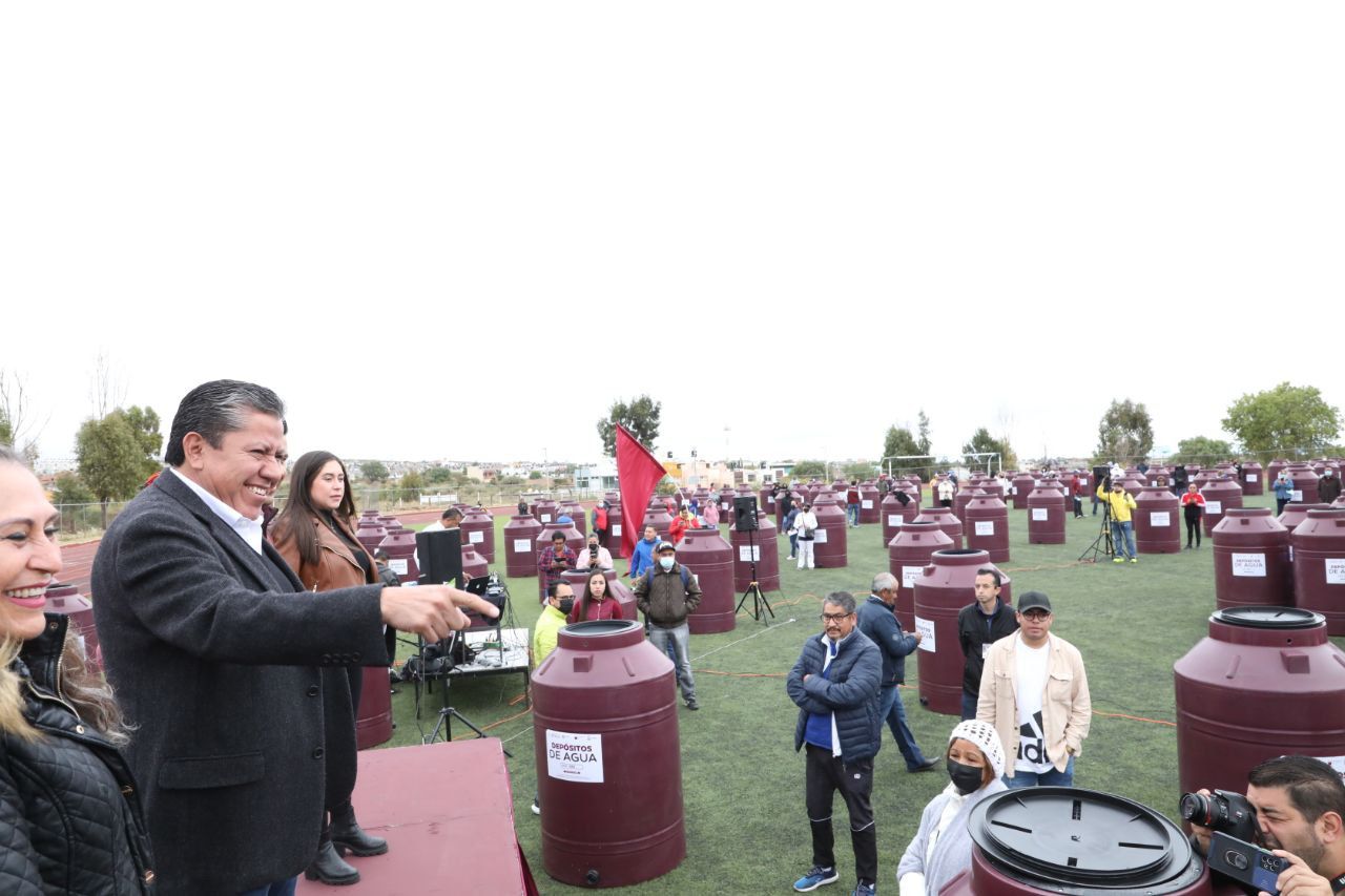 Reunidos en la Unidad Deportiva de este municipio, el mandatario y el alcalde otorgaron los tinacos a familias de colonias y comunidades como, Arte Mexicano, Luis Donaldo Colosio, Tacoaleche, Ojo de Agua de la Palma, Mezquital, Tierra y Libertad, Ampliación Minas, por mencionar algunas.