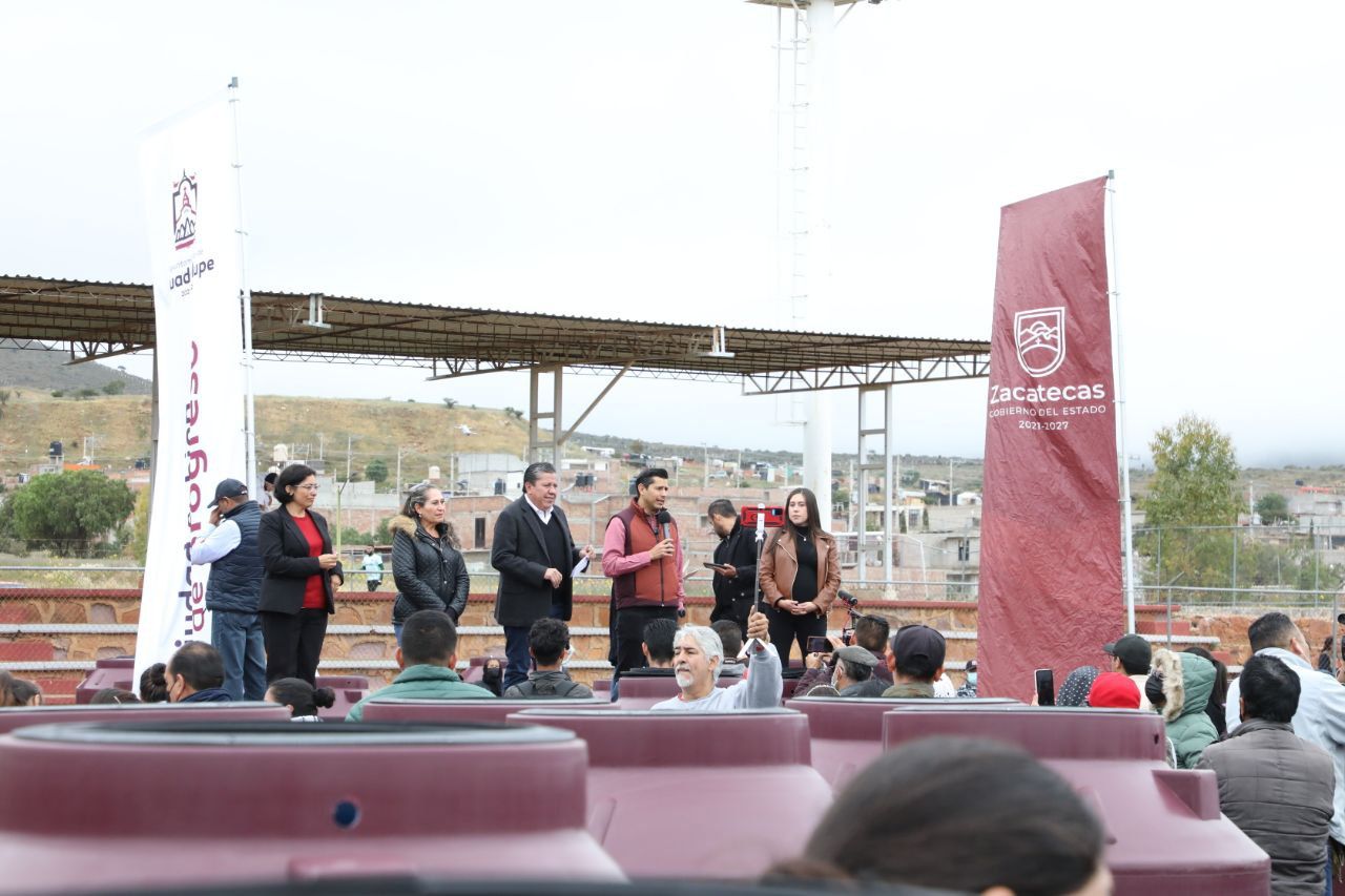 Benefician Gobernador David Monreal y Alcalde Julio César Chávez a 1 mil familias guadalupenses con depósitos de agua potable