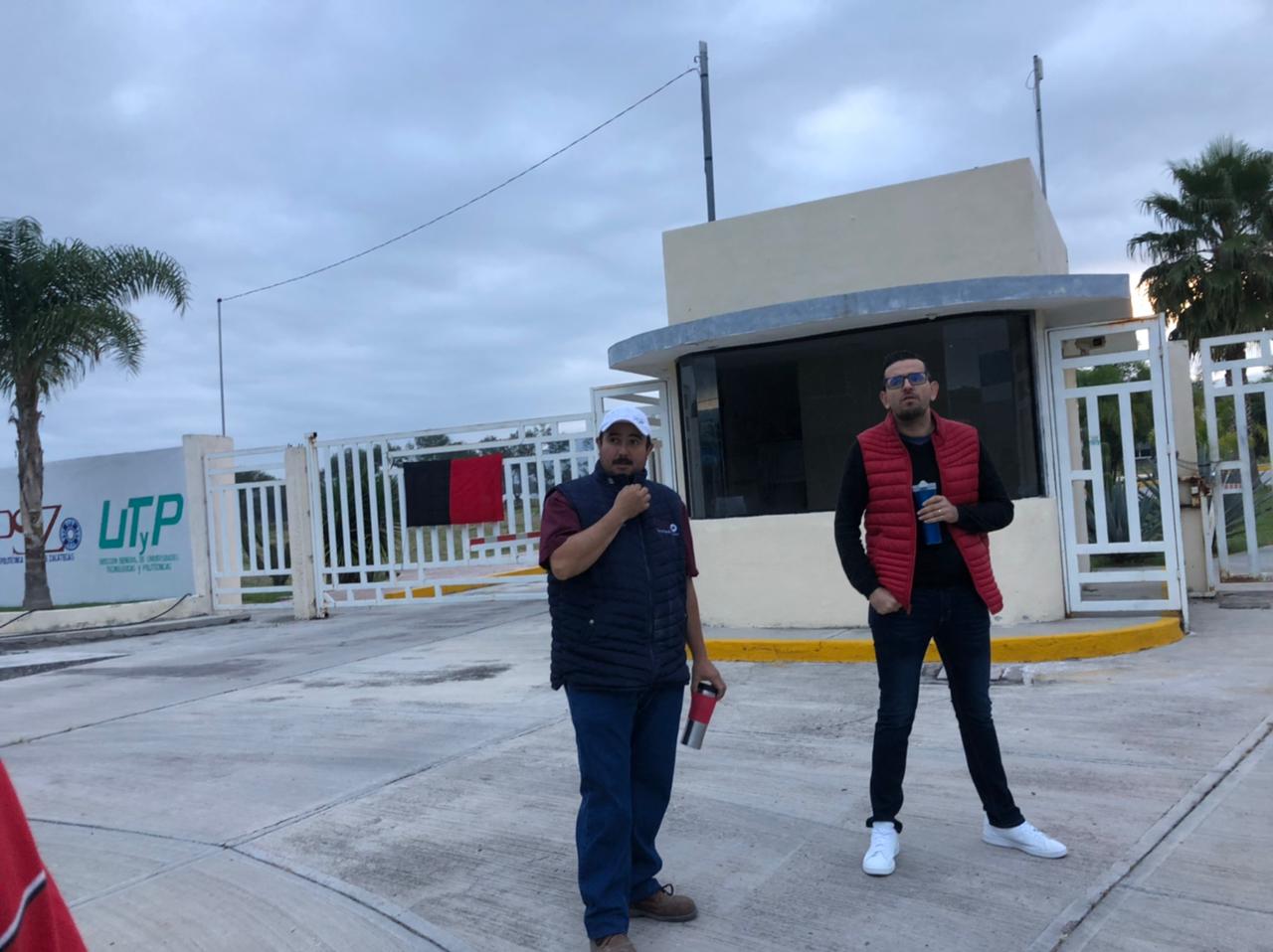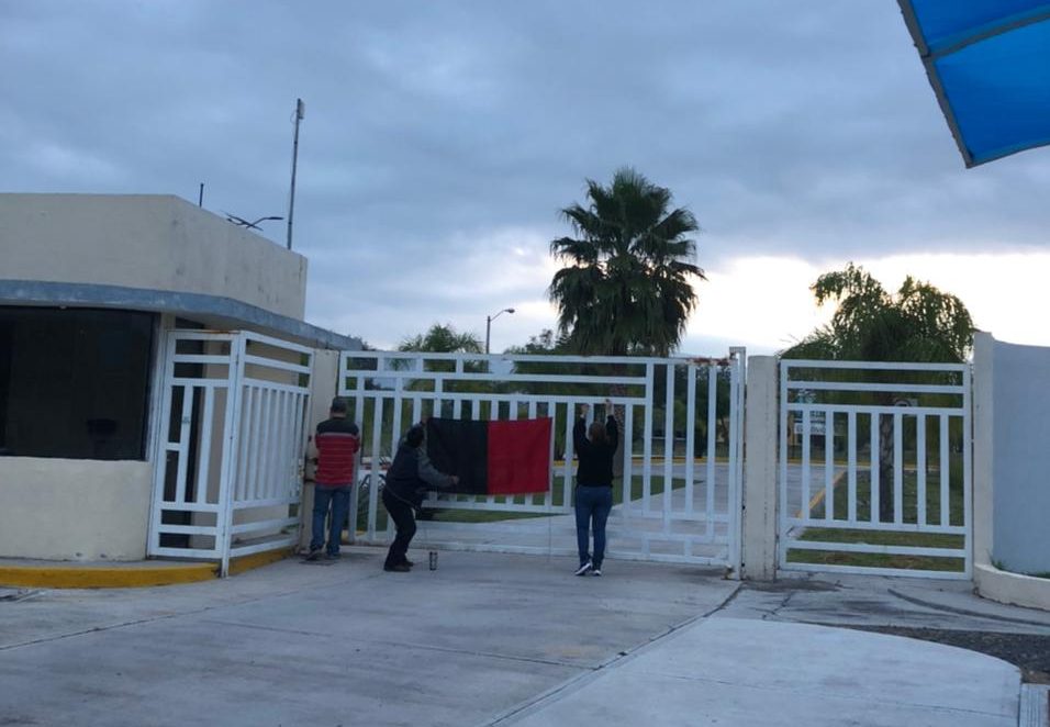Juchipila, Zacatecas.- Unidos en defensa de sus intereses, trabajadores de la Universidad Politécnica del Sur de Zacatecas, colocaron hoy las banderas rojinegras en protesta de atropellos y falta de mejoras laborales y sociales.
