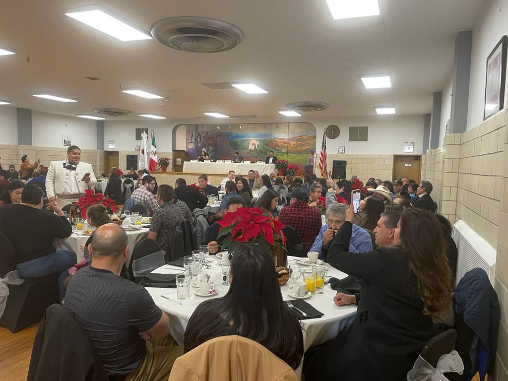 Chicago, Illinois.- En lo que es, el tradicional Desayuno Anual de la Federación de Clubes Unidos Zacatecanos en Illinois, Estados Unidos; Iván Reyes Millán, titular de la Secretaría del Zacatecano Migrante en Zacatecas, acudió con la representación del gobernador David Monreal, ahí el funcionario reconoció a la comunidad zacatecana radicada en esta parte de la Unión Americana.