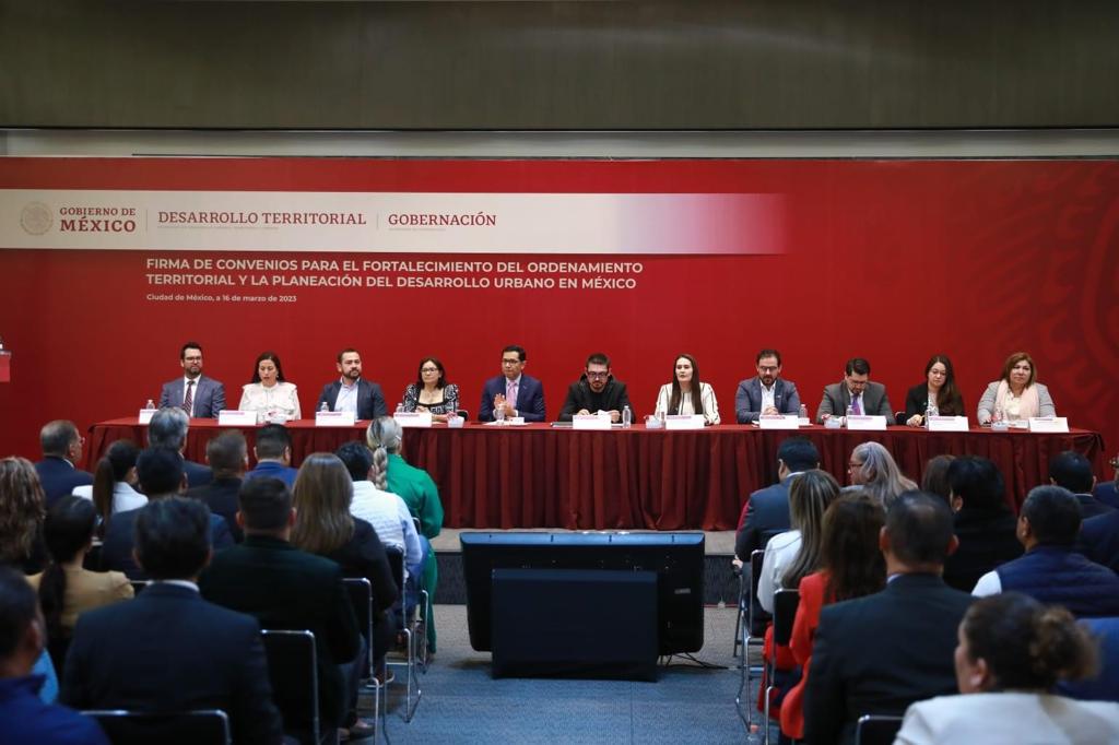 Mientras que el coordinador general de Desarrollo Metropolitano y Movilidad de la Sedatu, Álvaro Lomelí Covarrubias, dio a conocer que la aplicación de esta estrategia es resultado de los trabajos impulsados por el Consejo Nacional de Ordenamiento Territorial, y con la firma del convenio se acompañará el proceso de elaboración de estos instrumentos mediante estrategias transparentes que contemplen las necesidades de cada región.