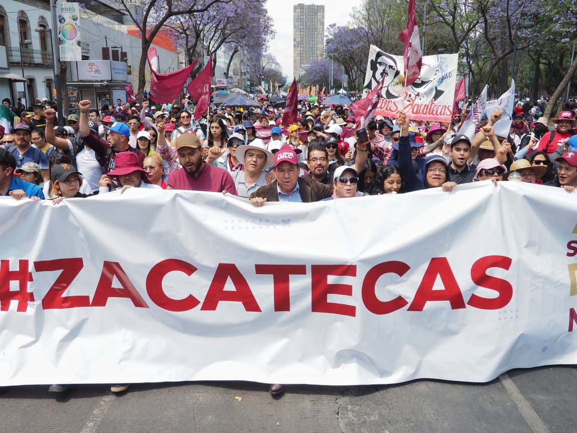 • El mandatario encabezó al contingente zacatecano que acudió a la CDMX para conmemorar el 85 aniversario de la Expropiación Petrolera