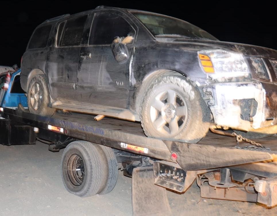 Estas personas, se encontraban portando un arma de fuego larga; asimismo fueron asegurados tres vehículos, una camioneta Chevrolet Silverado, un automóvil Nissan Armada y una camioneta Nissan Frontier.