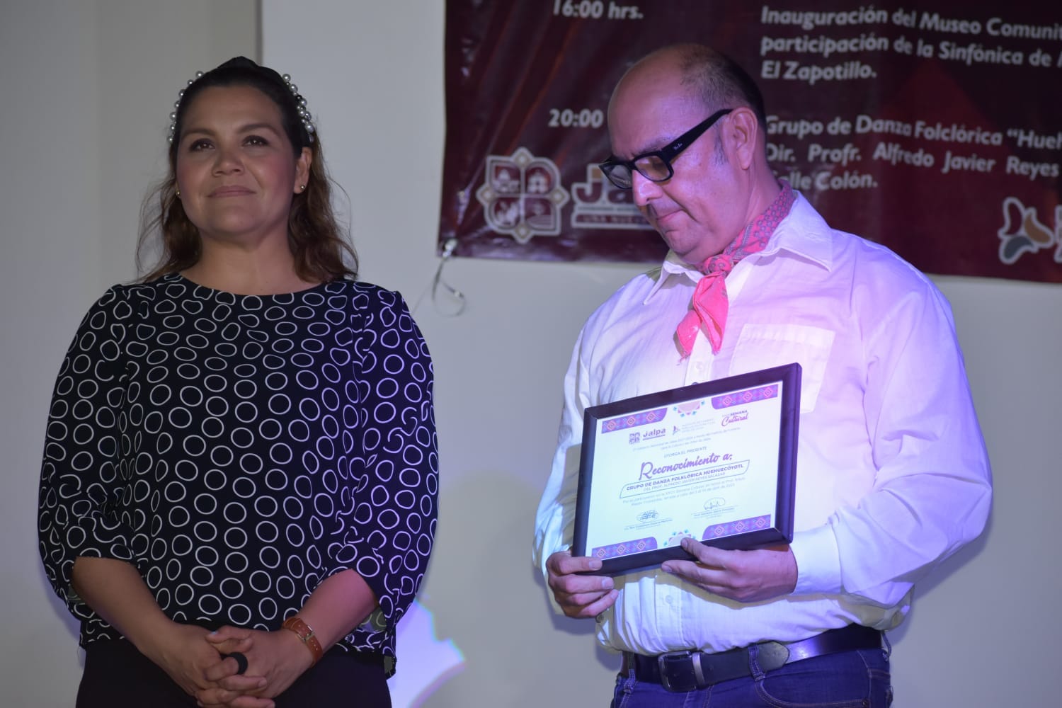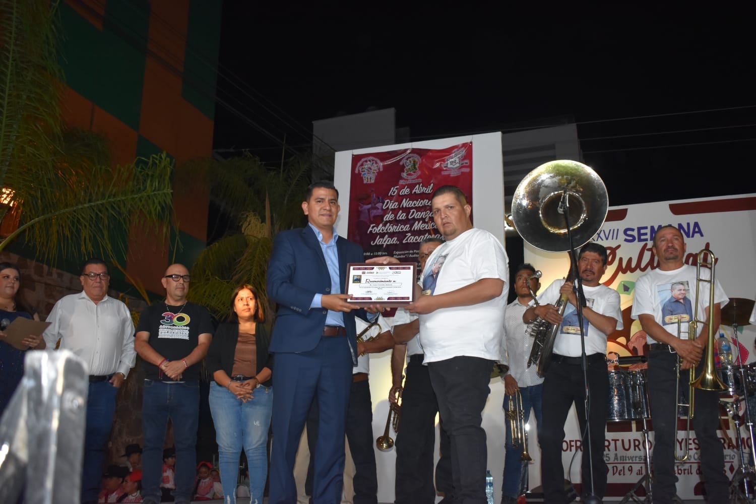 Este sábado, se rindió homenaje al Sr. Juan Cocolan Galaviz, destacado músico en el municipio, cuyo talento ha dejado una huella significativa en la comunidad jalpense. El Alcalde expresó su gratitud y orgullo al reconocer a la familia del Prof. Arturo Reyes Viramontes, un notable jalpense que contribuyó en gran medida a la cultura y educación de la región. Además, el Prof. Reyes Viramontes fue el primero en donar piezas al «Museo Comunitario», que hoy lleva su nombre, en un gesto que ha sido valorado y apreciado por la comunidad.