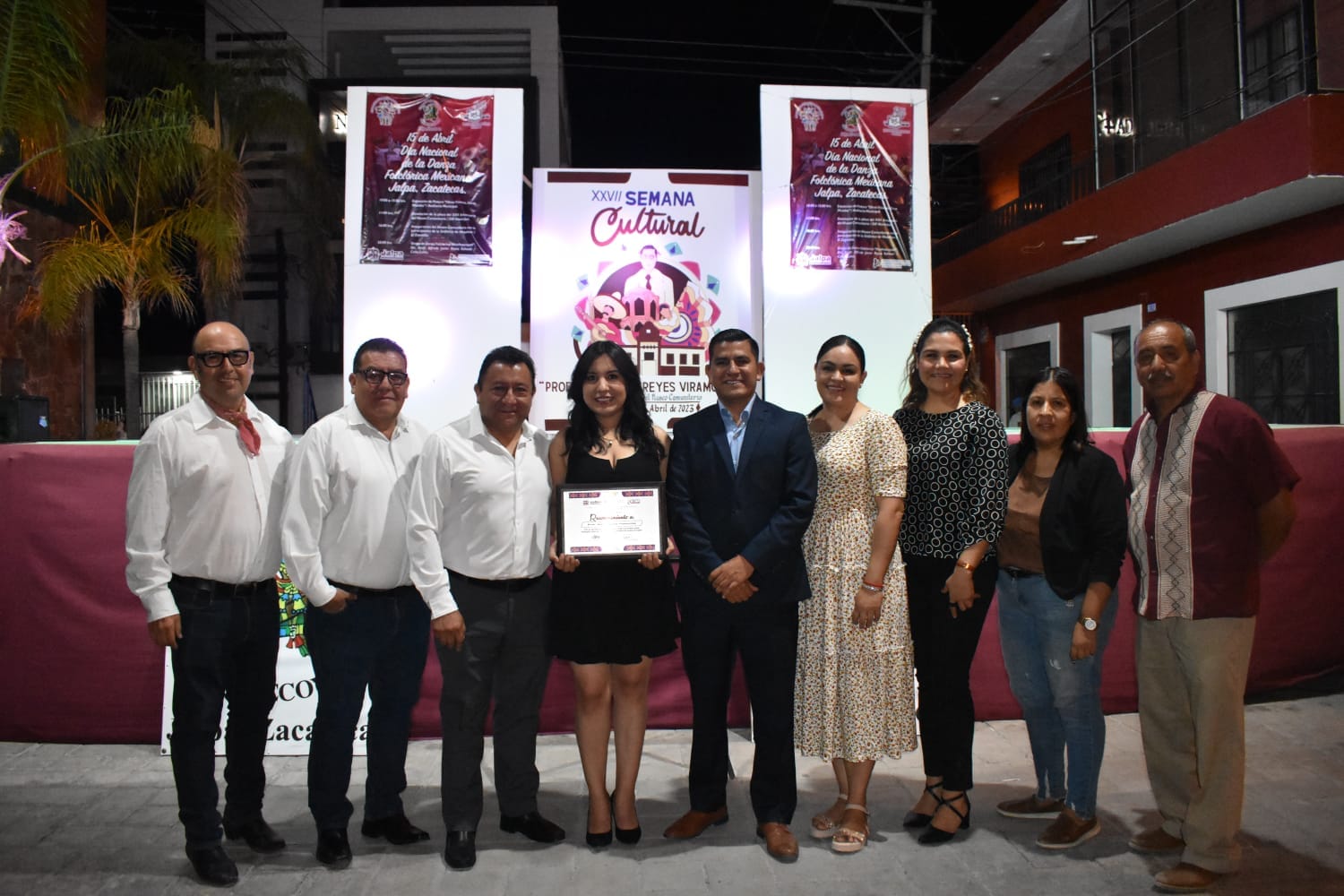 En el evento, también se agradeció la participación del Grupo Folklórico Huehuelcóyotl del Prof. Alfredo Javier Reyes Salazar, cuya presentación destacó y enriqueció la XXVII Semana Cultural.